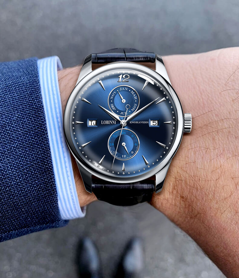 VẺ ĐẸP CỔ ĐIỂN: Kiểu số cọc nổi và Số 12 đã tạo nên sức hút mạnh mẽ cho Lobinni. Nét đẹp mang phong cách cổ điển nhưng rất hợp với phong thái của các quý ông thời đại.