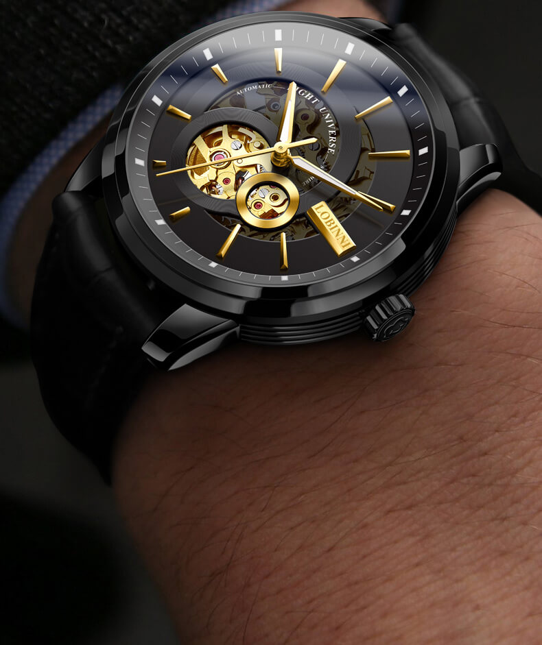Đồng hồ nam chính hãng LOBINNI Thụy Sỹ Thiết kế sang trọng, đẳng cấp cho quý ông Thời gian trữ cót lâu lên đến 40h Chống nước 5ATM, Kính sapphire Toàn bộ máy được làm