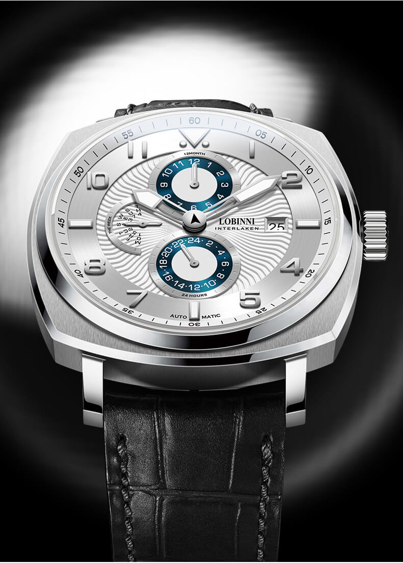 Đồng hồ nam chính hãng LOBINNI Thụy Sỹ Thiết kế sang trọng, đẳng cấp cho quý ông Thời gian trữ cót lâu lên đến 40h Chống nước 5ATM, Kính sapphire Toàn bộ máy được làm