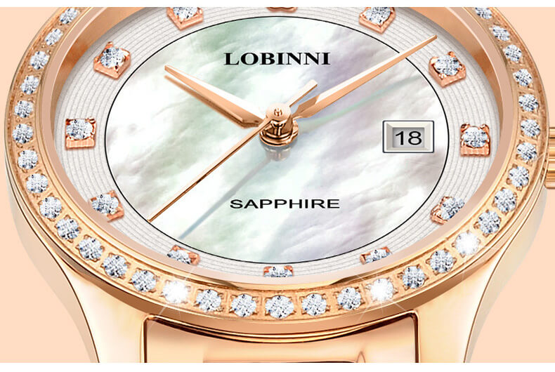 Đồng hồ nữ chính hãng Lobinni Thụy Sỹ Thiết kế hiện đại,sang trọng dành cho phái nữ Thời gian trữ cót lâu lên đến 40h Chống nước 5ATM, Kính sapphire Toàn bộ máy được làm