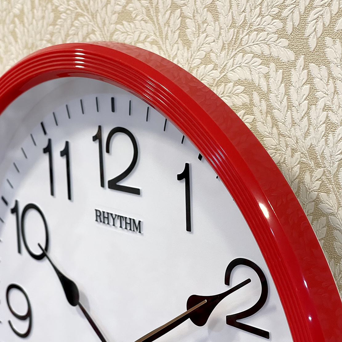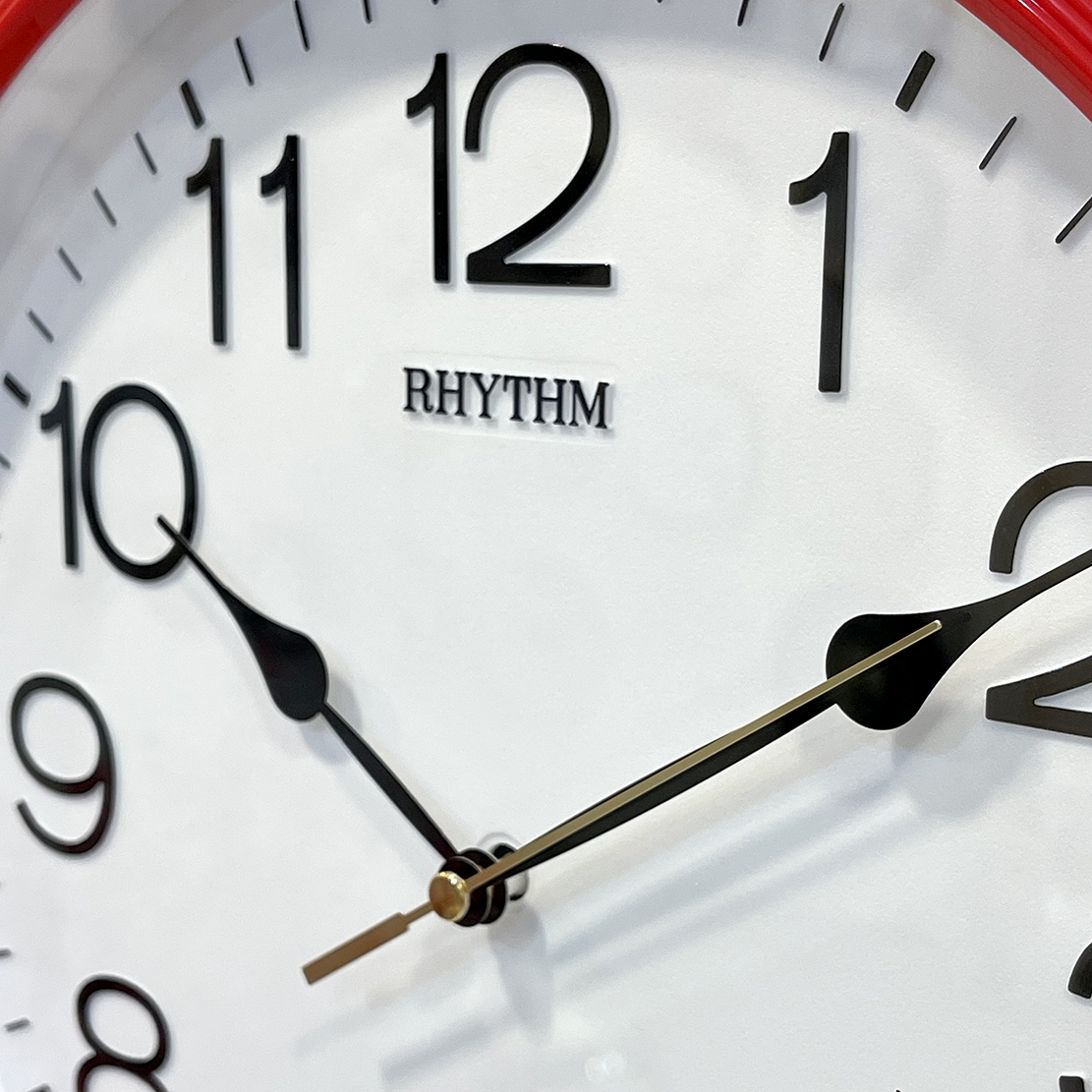 Mua tại TiktokĐồng hồ treo tường Rhythm CMG734NR01, dùng 1 pin tiểu (AA x 1), vỏ nhựa cao cấp màu đỏ, không bạc màu, Kích thước 31.2 x 5.0cm, trọng lượng 710g. Máy kim giật tiết kiệm