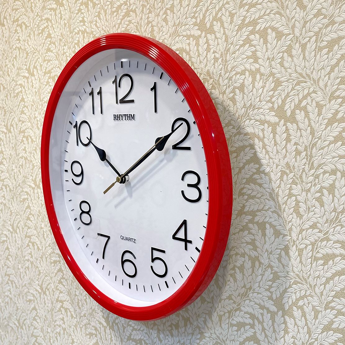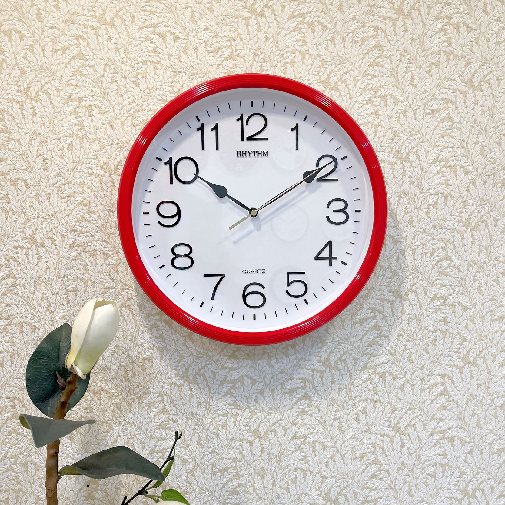 Mua tại TiktokĐồng hồ treo tường Rhythm CMG734NR01, dùng 1 pin tiểu (AA x 1), vỏ nhựa cao cấp màu đỏ, không bạc màu, Kích thước 31.2 x 5.0cm, trọng lượng 710g. Máy kim giật tiết kiệm pin, chạy cực êm không phát tiếng kêu gây khó chịu, chính xác, bền bỉ. Lưu ý: Đồng hồ có kèm theo pin hãng Tặng kèm 1 tắc kê nhựa, 1 vít vặn treo đồng hồ Giá bán đã bao gồm VAT