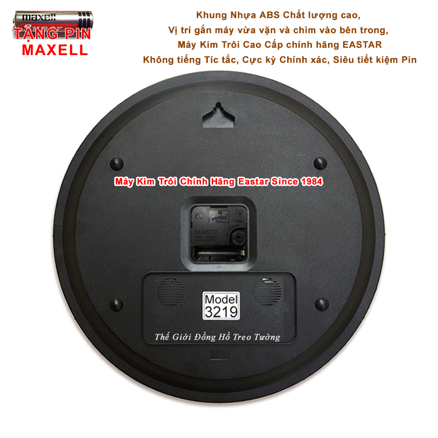 1. THÔNG TIN CHI TIẾT: - Thương hiệu: Eastar. - Loại: Máy Đồng hồ Treo tường Kim phản quang Công nghệ Thạch anh (Quartz) chạy kim (Analogue), Loại máy đồng hồ kim trôi chạy êm