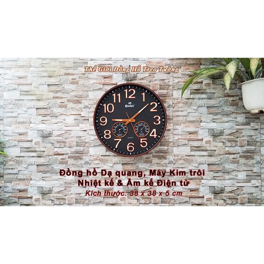 ✨Đồng Hồ Treo Tường DẠ QUANG Tròn Lớn (38cm) - NHIỆT ẨM KẾ Tự Động (Không Dùng Pin) - Máy KIM TRÔI EASTAR - Số Nổi 3D - Viền Siêu Mỏng - Tặng Pin Maxell - BH 1 Năm