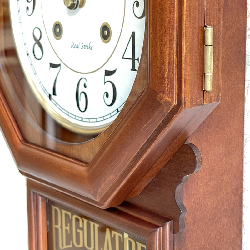 Đồng hồ quả lắc Rhythm CMJ586NR06 dùng 1 pin C, kích thước 24.0 x 54.0 x 11.7cm, vỏ gỗ. Cửa mở phía trước kiểu cổ điển. Gõ điểm giờ bằng GONG (đũa) cho cảm giác thật như đồng hồ cổ. Bộ Máy Sản xuất tại Nhật Bản, chạy chính xác, êm ái, bền bỉ.