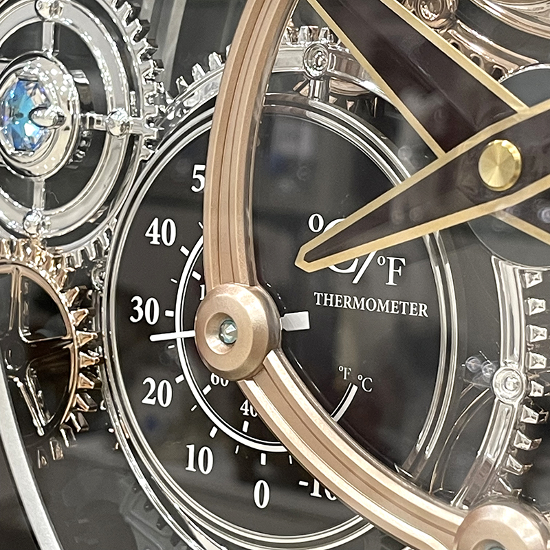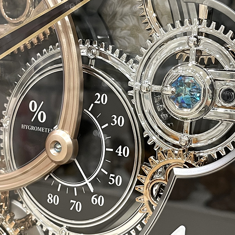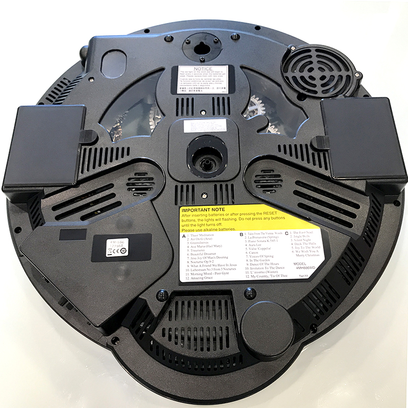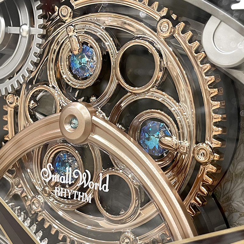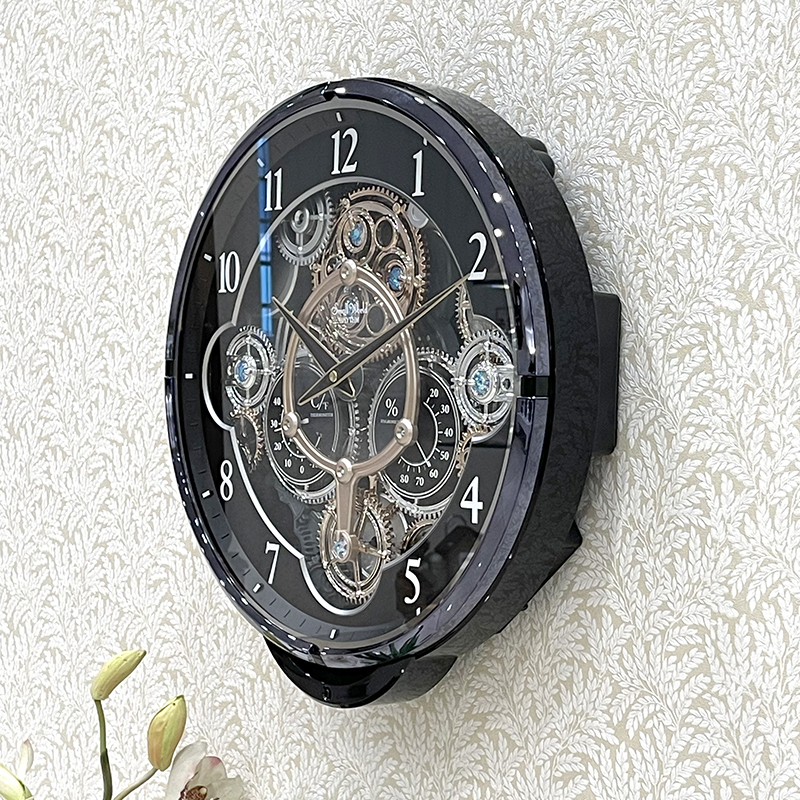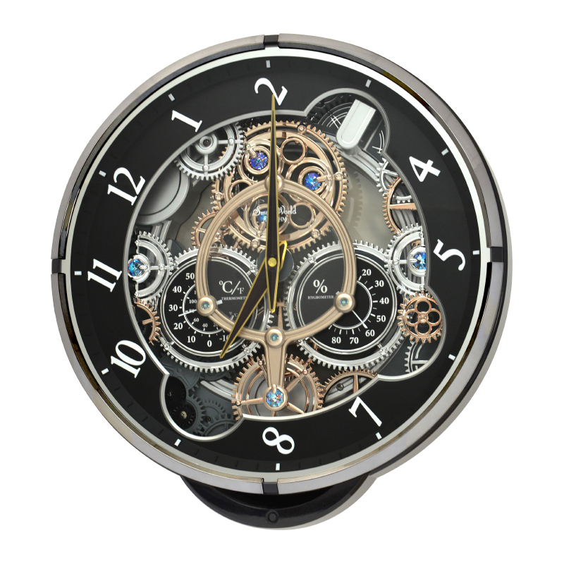 Mua tại TiktokĐồng hồ treo tường Rhythm Magic Motion 4MH886WD02, sử dụng 2 pin (D) Vỏ nhựa cao cấp đen bóng, Kích thước 39.0 x 41.0 x 8.6cm, trọng lượng 2.4kg Âm thanh thính phòng SIP sound in palce với 24 bản nhạc (12 + 12 Melodies),6 bản giáng sinh (X-mas Songs). Cảm ứng ánh sáng điều khiển nhạc Có núm vặn chỉnh âm lượng rất tiện lợi. Các bánh răng trên mặt số đồng hồ xoay tròn khi có nhạc. Trục các bánh răng trên mặt số được cẩn đá pha lê xanh. 2 đồng hồ nhỏ ngay vị trí trung tâm thể hiện nhiệt độ và độ ẩm.