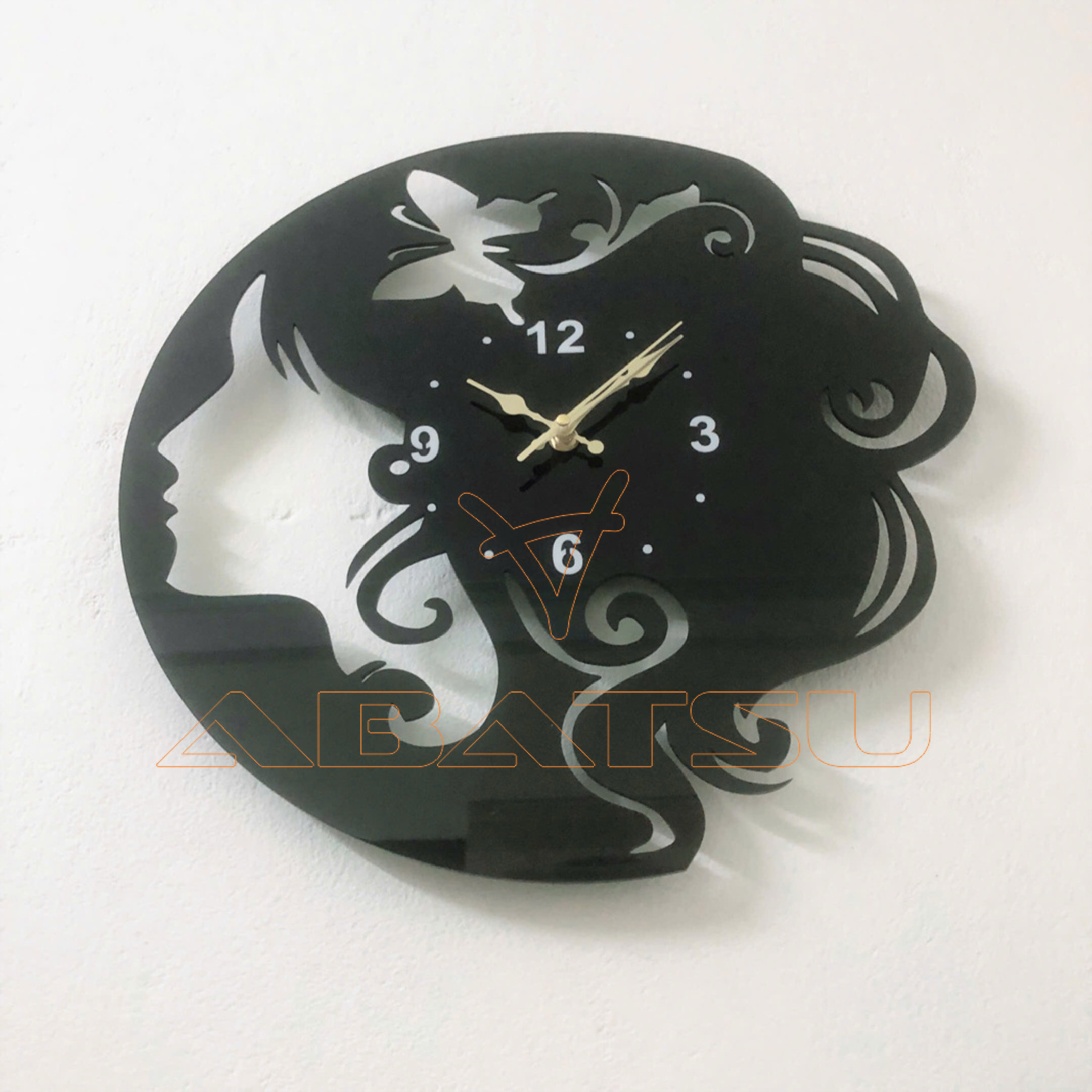 Chiếc đồng hồ mang hình dáng một cô gái thanh lịch, với những đường cong uyển chuyển được kết hợp với hình ảnh con bướm bay. Thiết kế tinh tế này không chỉ phù hợp với không gian tiệm tóc nữ mà còn mang đến cảm giác nghệ thuật và độc lạ. Khách hàng của bạn chắc chắn sẽ ấn tượng ngay khi bước vào.