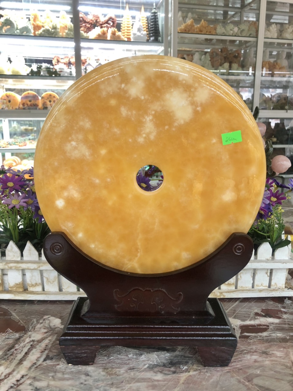 ✨Đồng tiền, đồng điếu may mắn phong thủy chiêu nạp tài lộc đá ngọc hoàng long - Đường kính 26 cm