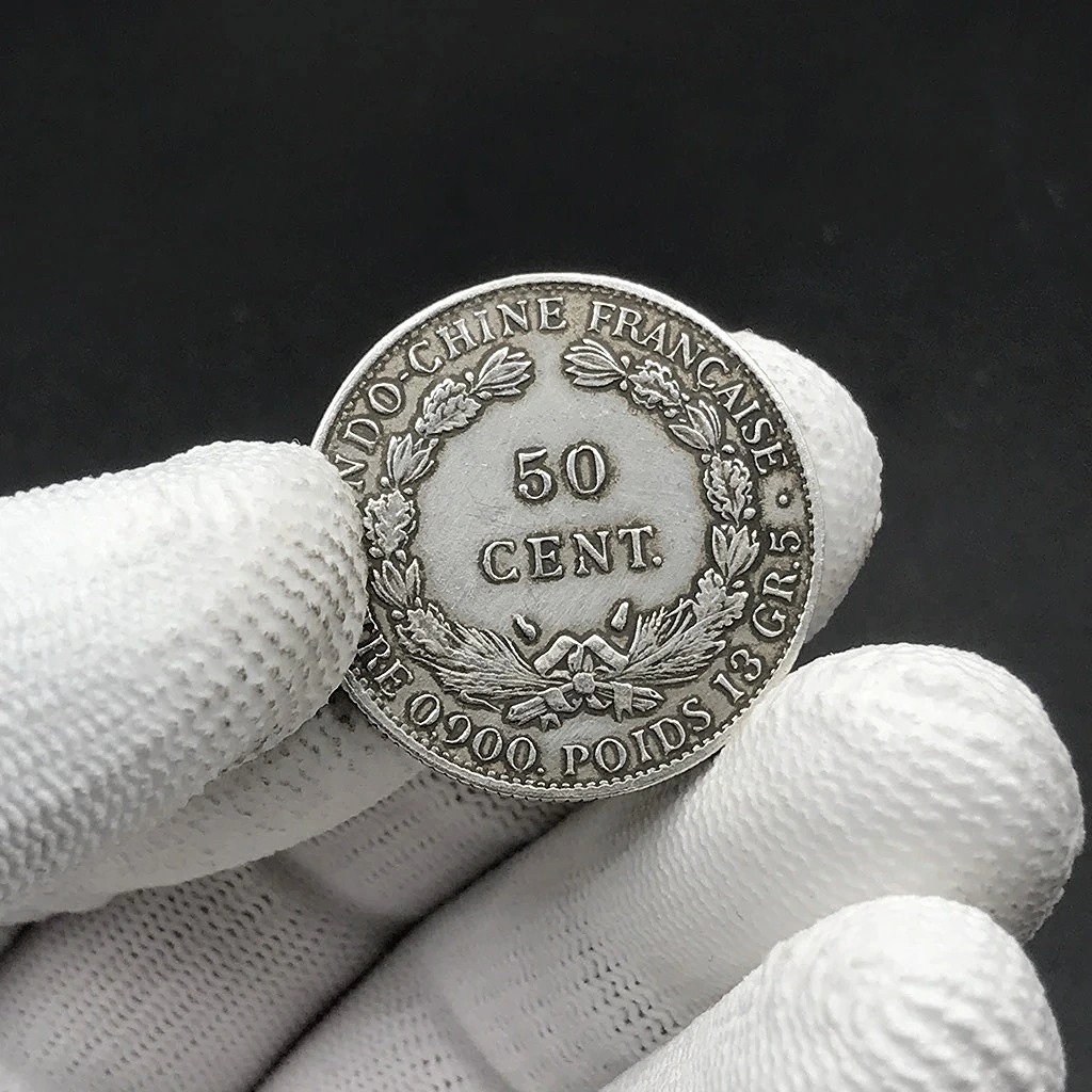 Đồng xu 50 cent bạc hoa xoè Đông Dương năm 1885
