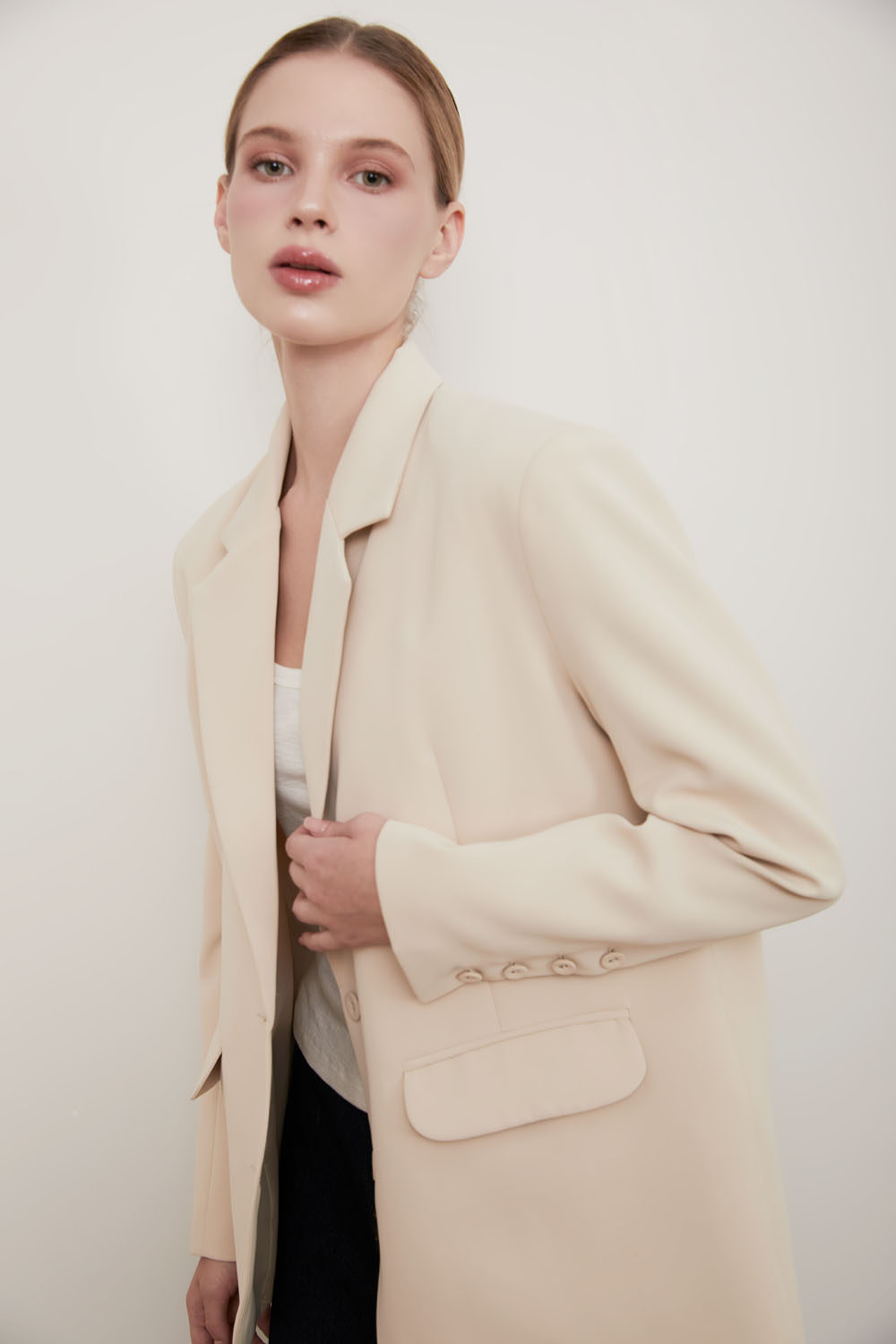 1. Thông tin sản phẩm Áo blazer vai rộng, không cổ, cài 2 khuy, tay lỡ dài, có lơ vê. Mỗi lớp vải mềm mại của Vincent Set là sự kết hợp hoàn hảo giữa