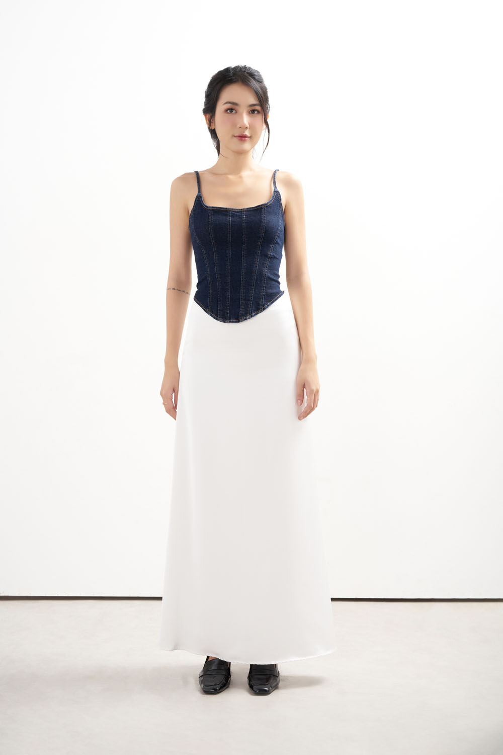 ✨DOTTIE - Chân váy maxi vải satin - Trắng - S0168