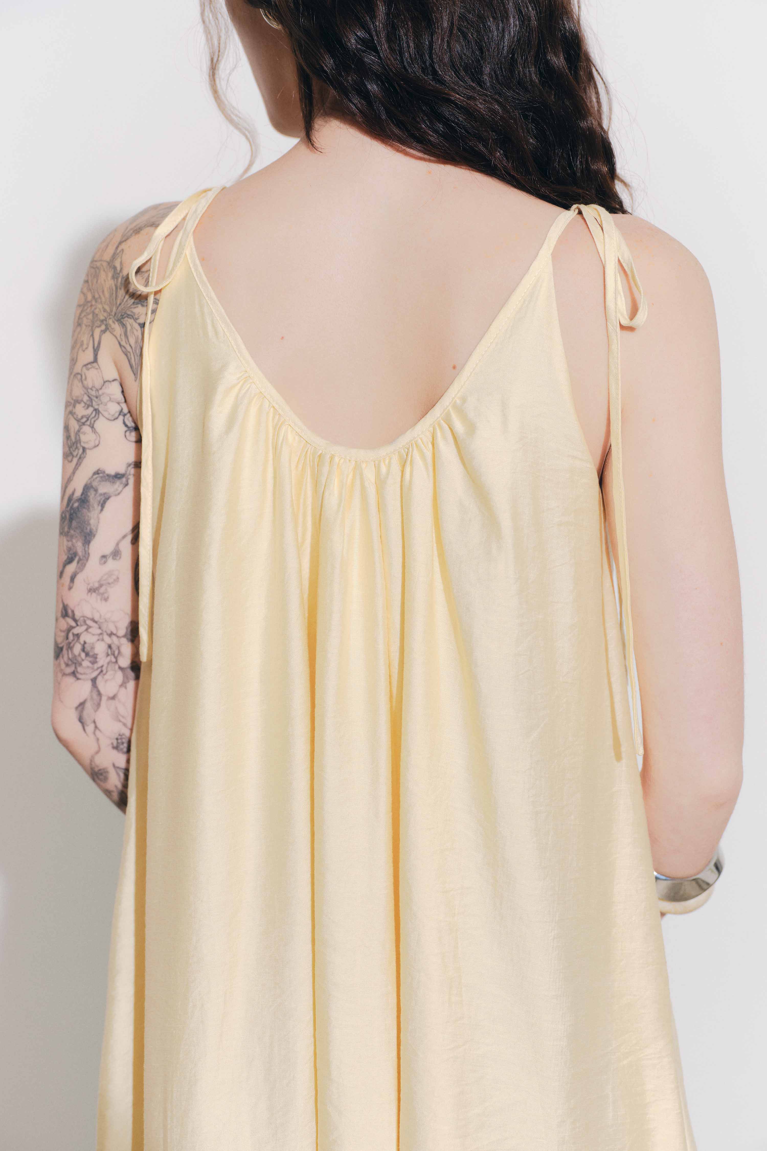- Màu sắc : Vàng - Chất liệu : Kate xước - Đặc tính : Nhẹ , thoáng mát, ít nhăn - Lưu ý giặt ủi : Giặt riêng, giặt tay, giặt máy Ủi ở nhiệt độ thấp - Size : S / M - Thông số sản phẩm : Dài váy / Ngang ngực S: 113 / 92 M: 115 / 96 LƯU Ý: + Bảng size chart chỉ mang tính chất tham khảo, tùy thuộc vào số đo cơ thể Dottie sẵn sàng tư vấn cho bạn. + Nếu cần Dottie hỗ trợ về sản phẩm, khi mở sản phẩm bạn vui lòng quay lại video quá trình mở sản phẩm giúp Dottie nhen. + Giặt riêng với đồ tối màu + Khuyến khích giặt tay đối với những sản phẩm trắng + Hạn chế sấy ở nhiệt độ cao QUY ĐỊNH ĐỔI TRẢ • Thời gian: