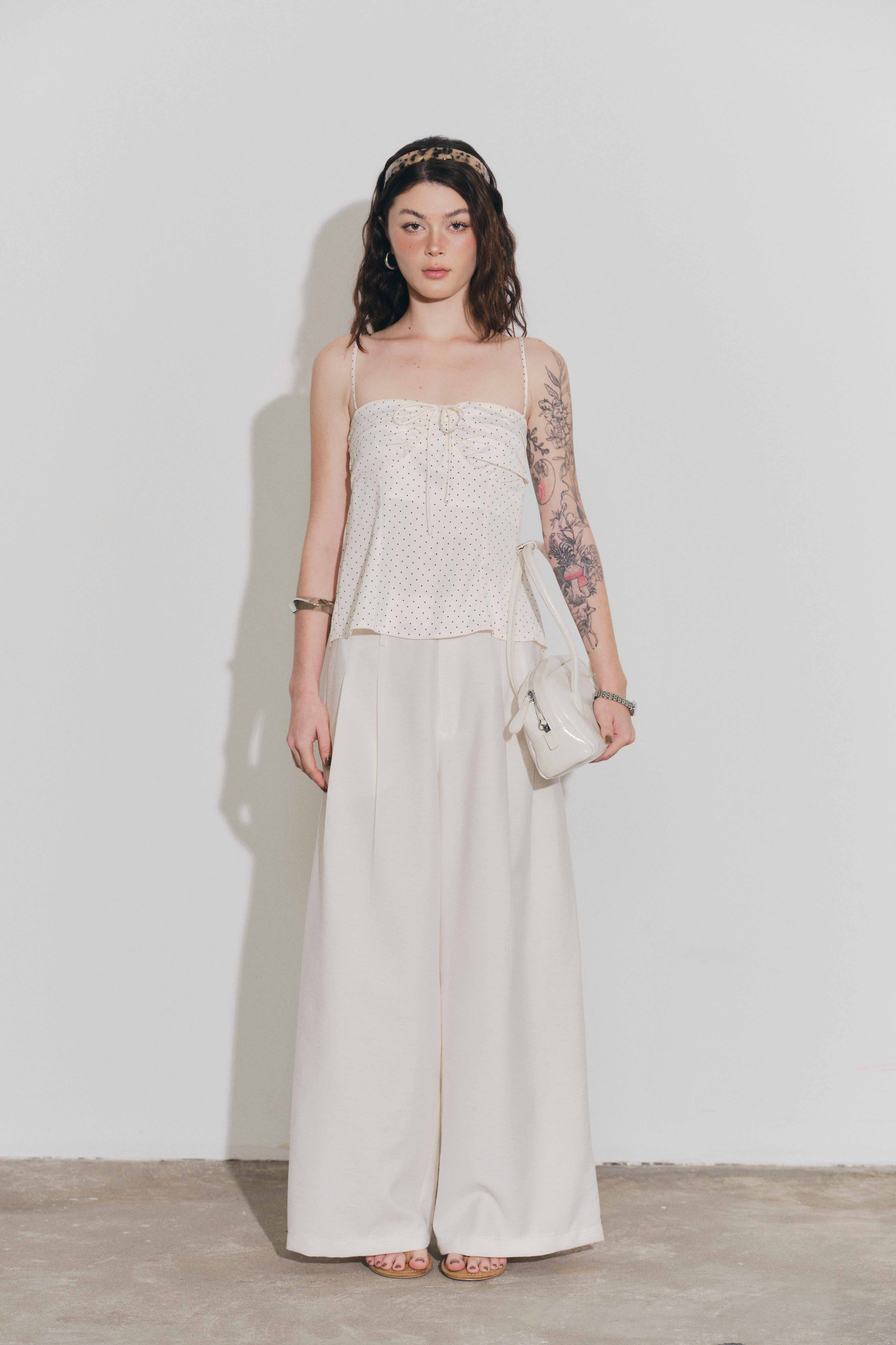 - Màu sắc : Trắng - Chất liệu : Tơ - Đặc tính : Nhẹ, thoáng mát. - Lưu ý giặt ủi : Giặt riêng, giặt tay, giặt máy Ủi ở nhiệt độ thấp - Size : S / M / L - Thông số sản phẩm : Dài quần / Ngang eo / Ngang ống S: 98 / 67 / 70 M: 100 / 71 / 72 L: 100 / 75 / 74 LƯU Ý: + Bảng size chart chỉ mang tính chất tham khảo, tùy thuộc vào số đo cơ thể Dottie sẵn sàng tư vấn cho bạn. + Nếu cần Dottie hỗ trợ về sản phẩm, khi mở sản phẩm bạn vui lòng quay lại video quá trình mở sản phẩm giúp Dottie nhen. + Giặt riêng với đồ tối màu + Khuyến khích giặt tay đối với những sản phẩm trắng + Hạn chế sấy ở nhiệt độ cao QUY ĐỊNH ĐỔI TRẢ