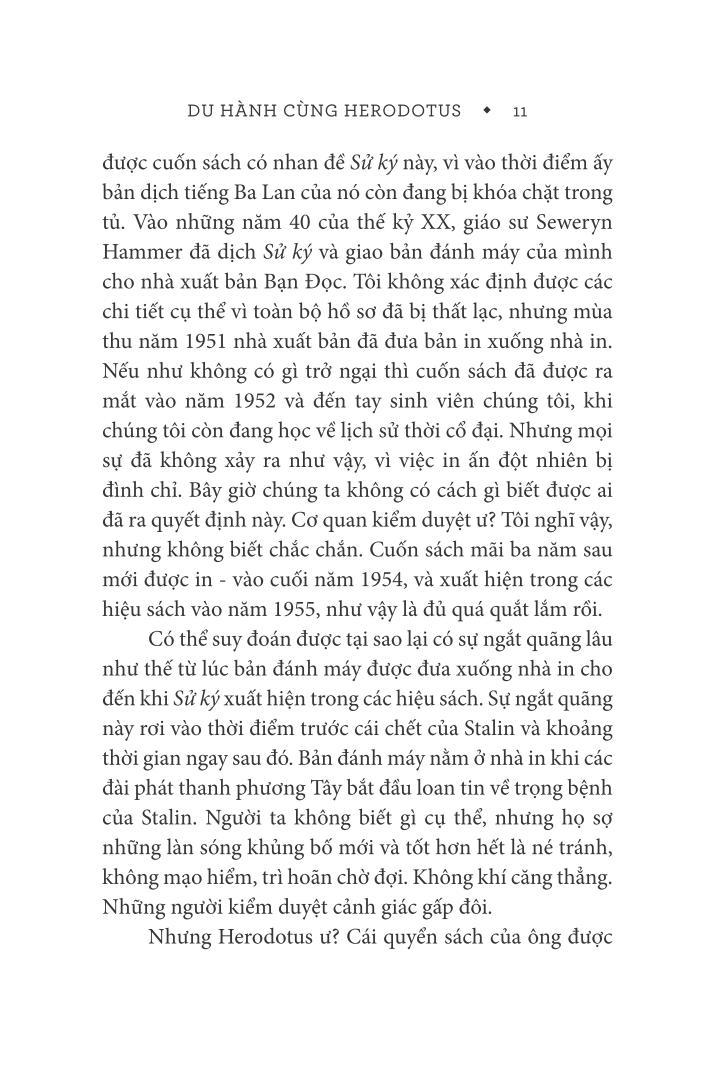 Du ký là mảnh đất màu mỡ lúc xa xôi khi lạ lẫm vẫn là ấn tượng của con người về thế giới rộng lớn bên ngoài. Tưởng chừng sự hoàn thành quá trình tìm hiểu cặn kẽ những miền đất lạ đã tước đi chỗ đứng của những nhà văn ưa phiêu lưu như Pierre Lot, Blaise Cendrars hay Rudyard Kipling, chấm dứt cái thời Paul Morand cảm khái mà thốt lên rằng: "Đi là chết một ít, nhưng ở lại là vỡ tan thành trăm mảnh” (Những cuộc du hành). Vậy nhưng, thế giới hiện đại của chúng ta vẫn còn những người như V.S. Naipaul và nhất là Ryszard Kapuściński, một con người xê dịch, một thiên tài của sự quan sát và xâu chuỗi quá khứ với hiện tại. Nhà văn Ba Lan nhiều lần có tên trong danh sách ứng cử viên giải Nobel Văn học đã kể cho ta về châu Á, châu Phi trong một giọng văn đầy hùng khởi nhưng tỉnh táo và tỉ mỉ, mô tả con người ở khắp các ngóc ngách thế giới bằng một chủ nghĩa nhân văn được truyền lại theo một con dường kỳ bí nào đó từ phản sáng chói của lịch sử nhân loại. Và không chỉ có vậy, ông còn mang trở lại cho chúng ta một sử gia Hy Lạp ít nhiều bị lãng quên: Herodotus