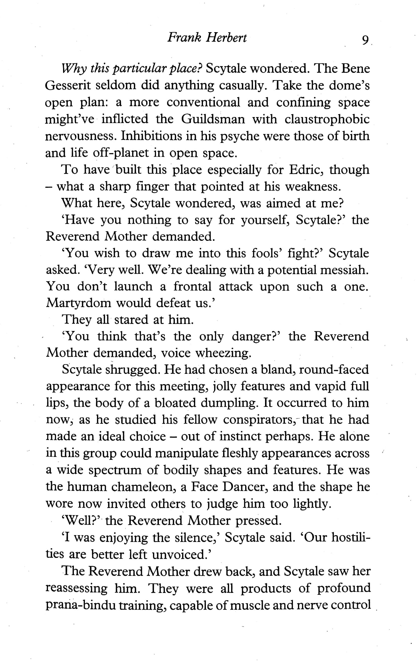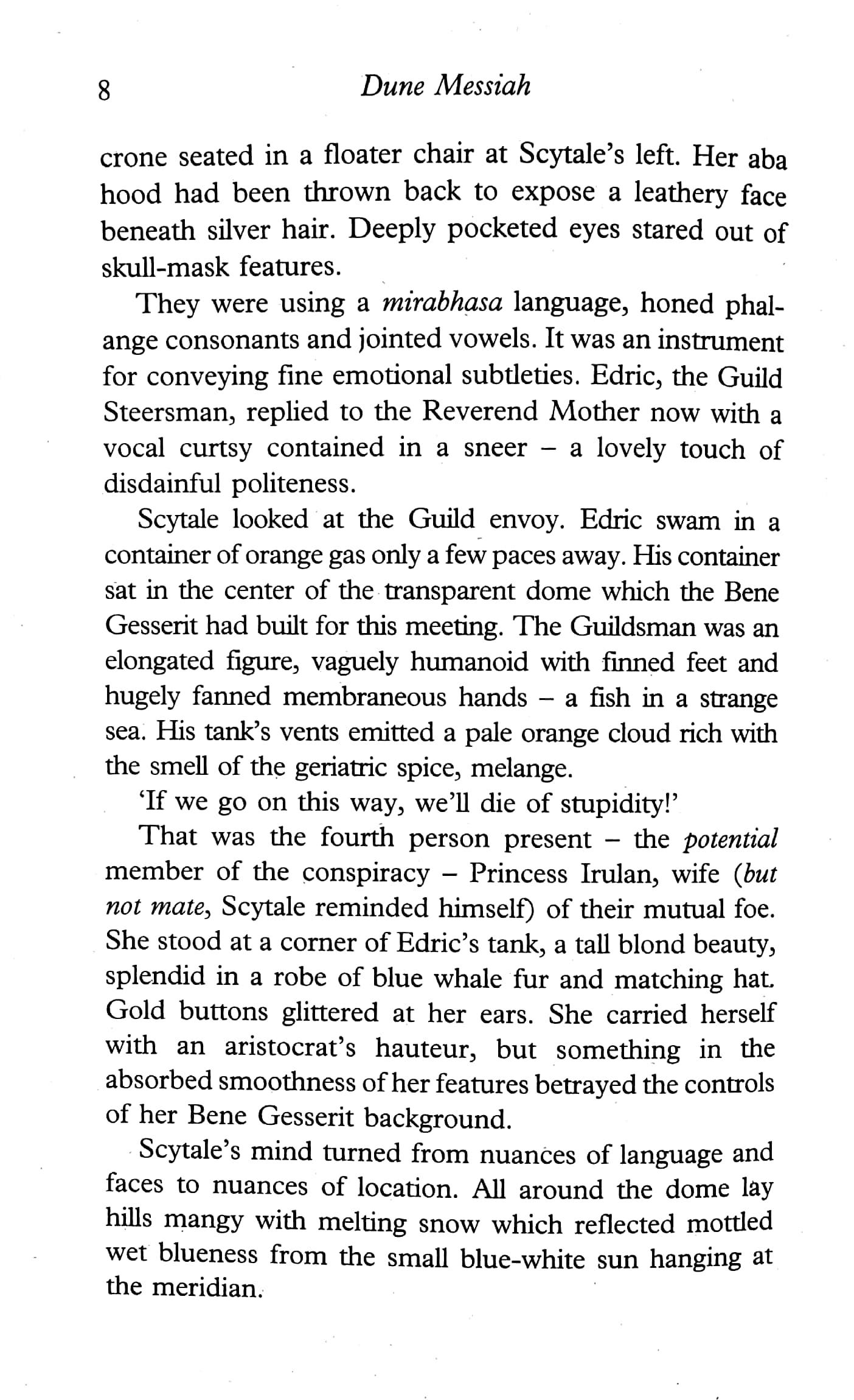 While former allies conspire to dethrone Paul and even his own consort acts against him, Paul accepts a gift from the Tleilaxu, a guild of genetic manipulators, hoping to find a single spark of peace and friendship amidst the betrayal and chaos. But this act undermines Paul's support from the Fremen, his own people. The Fremen are the true source of Paul's power; losing them is the one thing that could truly topple his empire.