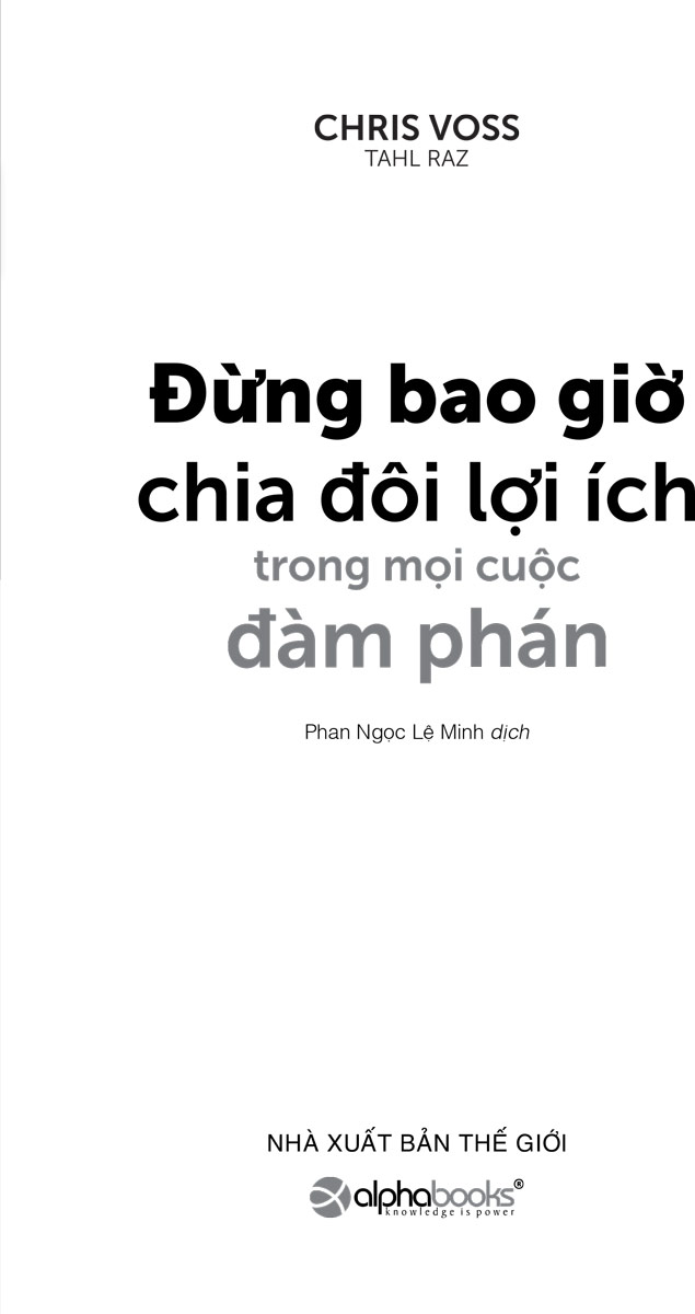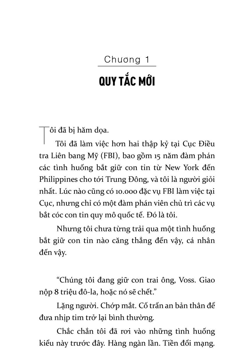 Với quan niệm “Cuộc sống là những cuộc đàm phán”, tác giả Chris Voss đã cung cấp 9 cách thức để chiến thắng mọi cuộc đàm phán, từ đó giúp ta thay đổi được cuộc đời của mình và thành công trong cuộc sống – như chính tác giả và các học viên của ông đã trải qua.