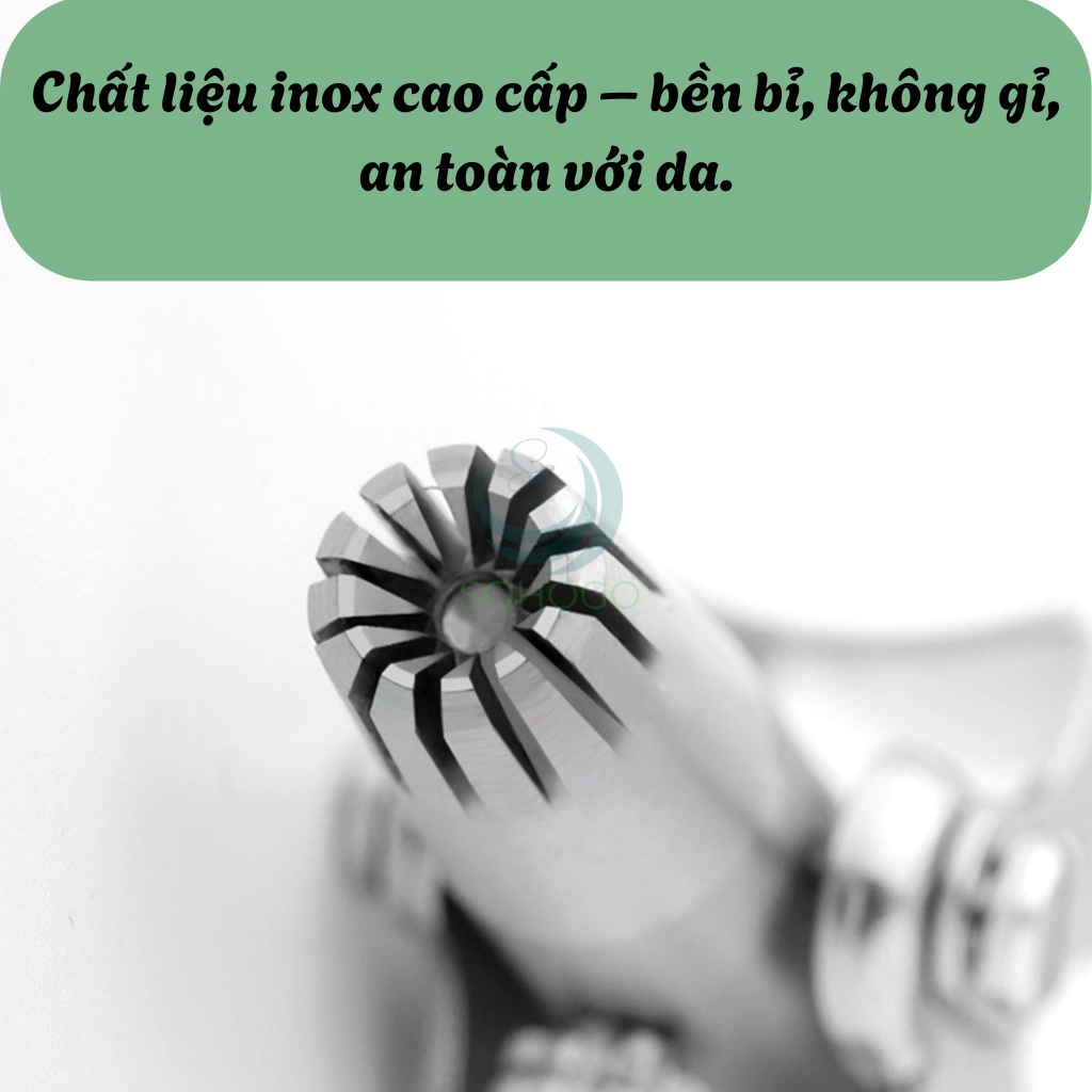 - Cơ chế quay tròn sẽ cắt lông mũi nhanh chóng.