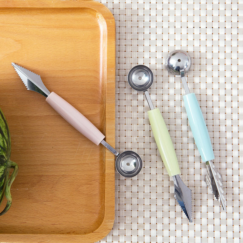Dụng cụ dao thìa muỗng tròn cắt, tỉa khắc, múc,nạo tạo hình trái cây hoa quả 2 đầu innox tiện lợi