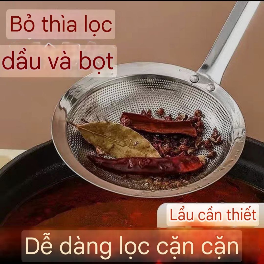 CHAO THÌA DÂY LỌC INOX SUS 304 LỖ LỌC ĐỘT NHỎ MỊN MÀNG CÔNG NGHỆ CNC - CHAO THÌA DÂY LỌC BỘT VỚT BỌT LỌC DẦU THỰC PHẨM CAO CẤPRay Thìa vớt bọt được sử dụng để vớt dầu, bọt, cặn bã hoặc dùng ray bột si...