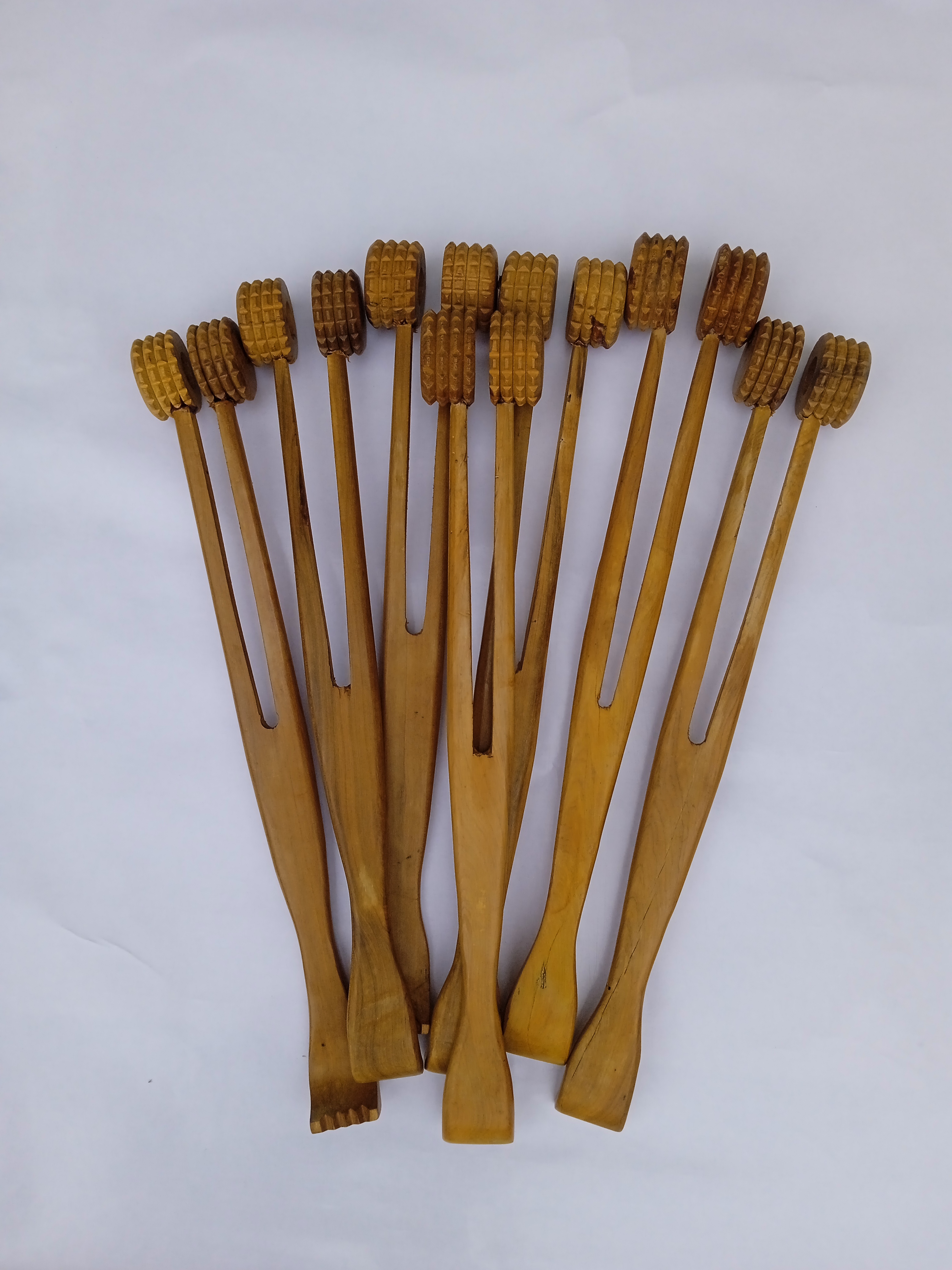 Dụng cụ massage bằng gỗ bách xanh với kích thước cầm vừa tay có tác dụng kích thích các huyệt đạo trên cơ thể giúp giảm căng thẳng mệt mỏi hỗ trợ lưu thông khí