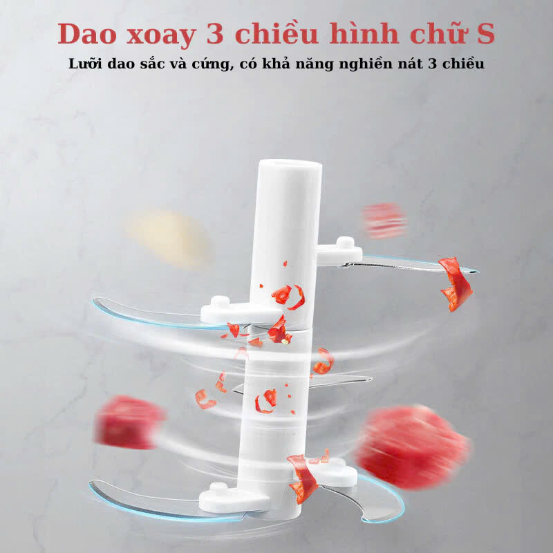 Cắt, xay nhuyễn đối với các loại hành tỏi, ớt , rau, thảo mộc, hành tây, các loại hạt...bằng tay chỉ với thao tác kéo dây cắt cực dễ và tiện Các mẹ làm đồ