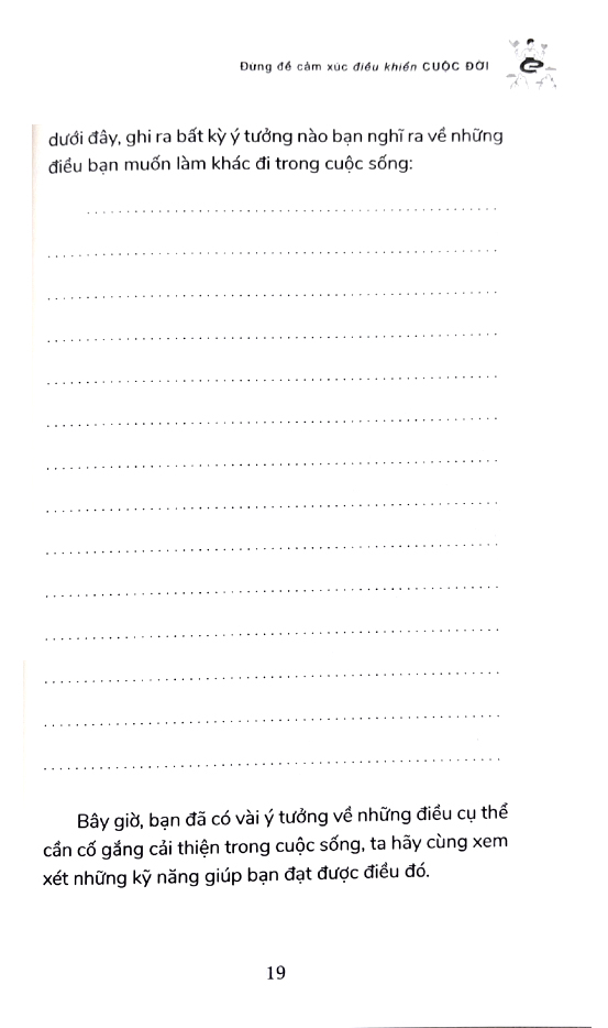 Đừng Để Cảm Xúc Điều Khiển Cuộc Đời là sách bài tập hỗ trợ các bạn trẻ tuổi teen khi rơi vào tình huống này. Bạn đọc sẽ tìm thấy trong sách những cách kiểm soát cảm xúc, giúp bạn sẵn sàng đương đầu với mọi “quả chanh” cuộc đời ném vào mình. Dựa trên liệu pháp hành vi biện chứng, một phương pháp trị liệu được thiết kế nhằm hỗ trợ những người gặp khó khăn trong việc xử lý những cảm xúc mãnh liệt, sách sẽ hướng dẫn bạn các kỹ năng cần thiết để vượt qua những thăng trầm trong đời với sự tự tin và duyên dáng.