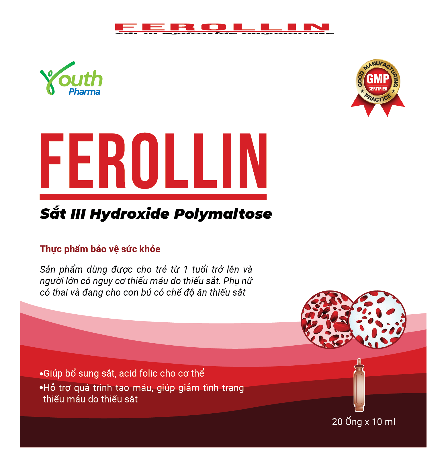 Dung Dịch Ferollin Youth Pharma 1. Công dụng:  - Giúp bổ sung sắt, acid folic cho cơ thể. - Hỗ trợ quá trình tạo máu, giúp giảm tình trạng thiếu máu do thiếu sắt 2.