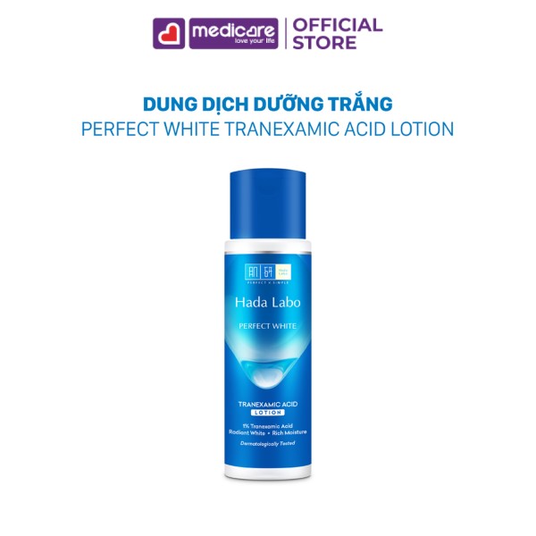 Dung Dịch HADA LABO Dưỡng Sáng Da Giảm Thâm Sạm 170ml là lotion dưỡng da thuộc dòng sản phẩm dưỡng sáng Perfect White mới của thương hiệu Hada Labo, với thành phần 1% T. X. A, Niacinamide, Vitamin C, E và gấp đôi Hyaluronic Acid cùng chiết xuất hạt ý dĩ giúp cấp ẩm chuyên sâu đặc biệt cải thiện các đốm nâu, dưỡng da sáng mịn, đều màu, rạng rỡ, tràn đầy sức sống.