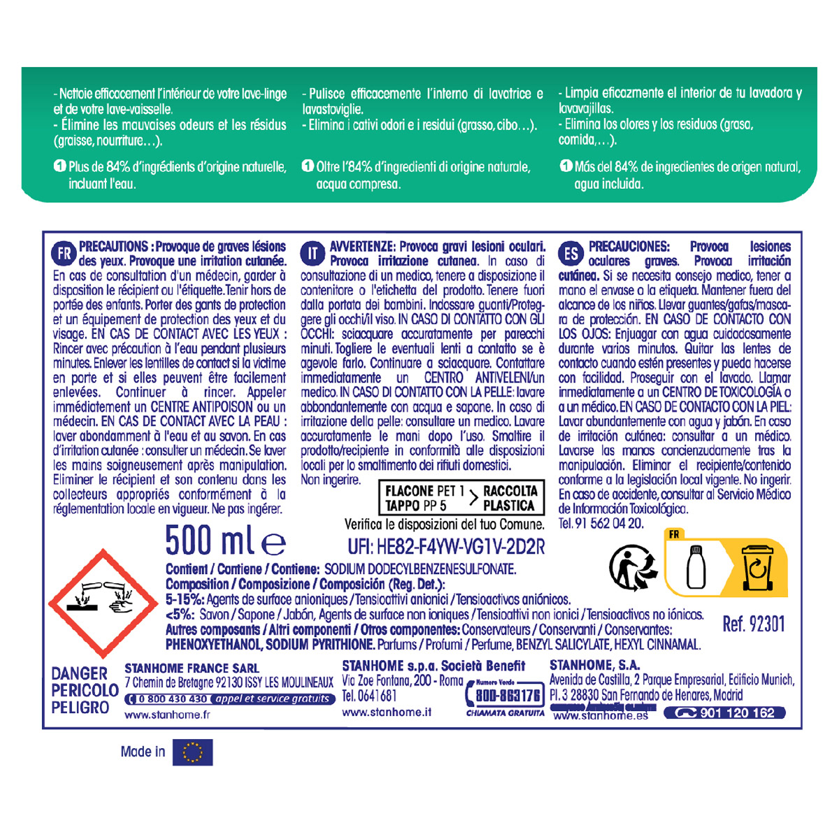 ✨Dung dịch vệ sinh lồng giặt, máy rửa chén Stanhome Machine Booster nguyên liệu tự nhiên 500ml