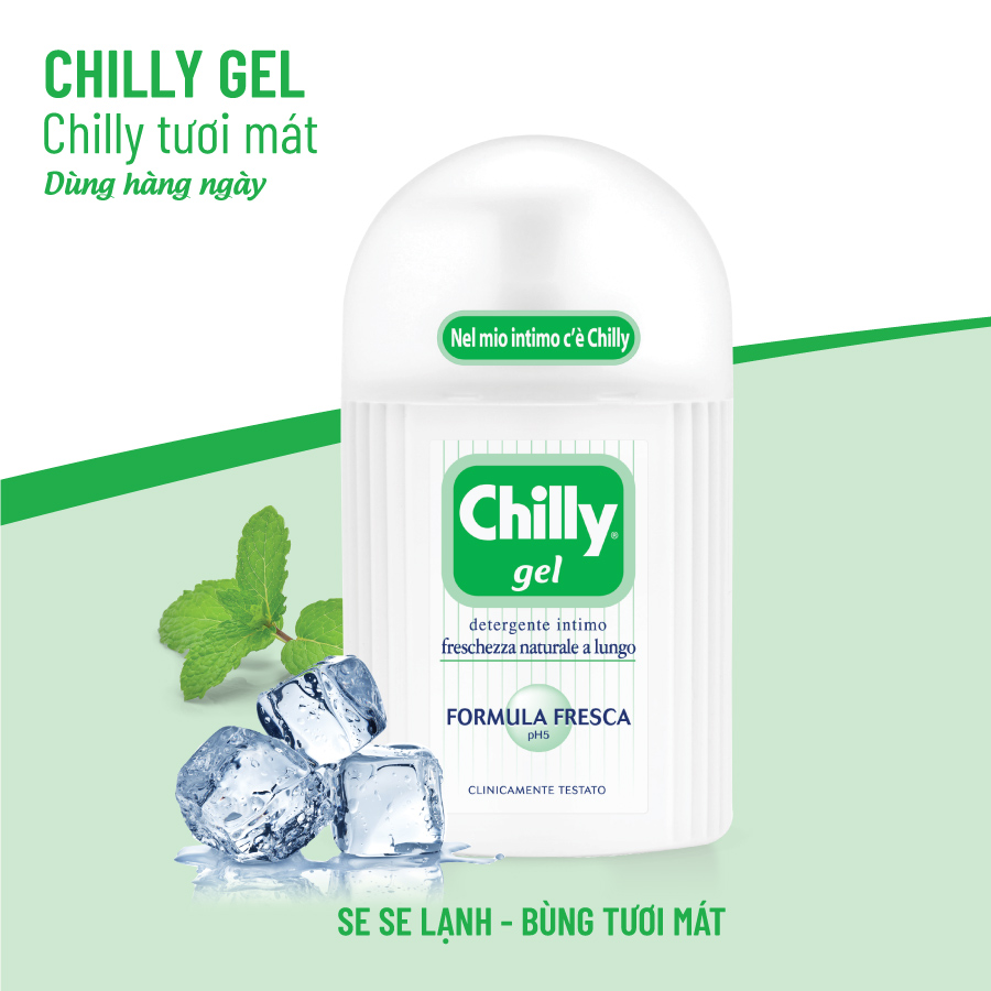 Dung dịch vệ sinh phụ nữ Chilly Gel Tươi Mát 200ml thích hợp cho làn da nhạy cảm. Thích hợp để dùng hàng ngày với độ pH 5 hoàn hảo, thích hợp với sinh lý