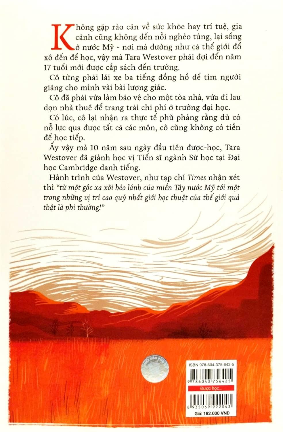 Tara Westover đã vượt qua cái có thật ấy, dĩ nhiên chẳng hề theo cách thẳng băng, dễ dàng, để được đi học; và mãi về sau, khi trở thành Tiến sỹ tại Đại học Cambridge lừng danh, cô đã buộc phải chấp nhận tình cảnh đứt lìa mối quan hệ với hầu hết người ruột thịt.