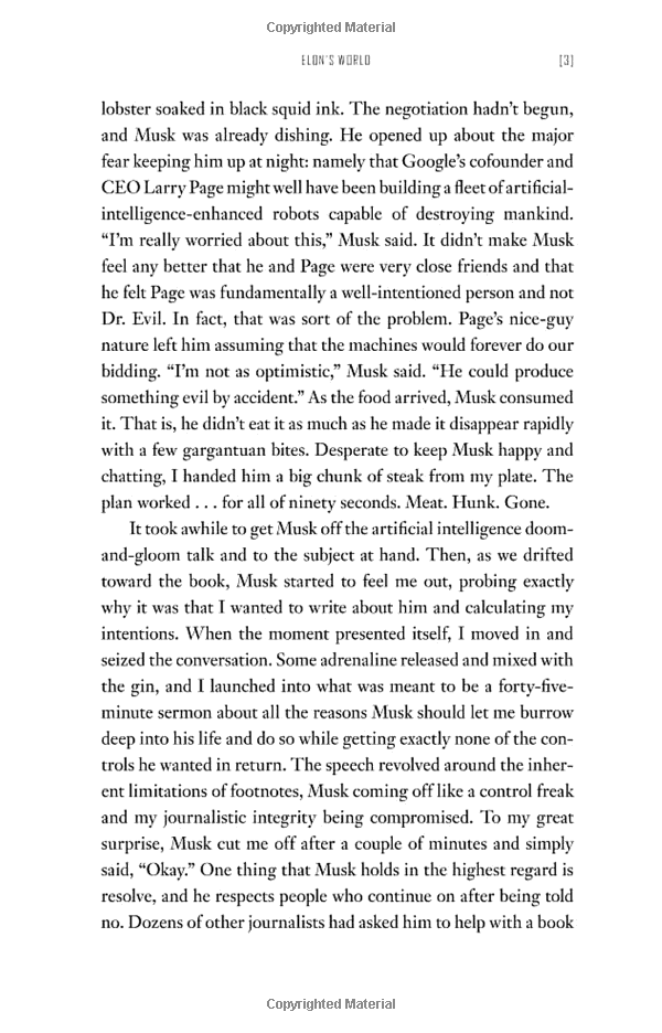 Vance uses Musk's story to explore one of the pressing questions of our time: can the nation of inventors and creators which led the modern world for a century still compete in an age of fierce global competition? He argues that Musk--one of the most unusual and striking figures in American business history--is a contemporary amalgam of legendary inventors and industrialists like Thomas Edison, Henry Ford, Howard Hughes, and Steve Jobs. More than any other entrepreneur today, Musk has dedicated his energies and his own vast fortune to inventing a future that is as rich and far-reaching as the visionaries of the golden age of science-fiction fantasy.