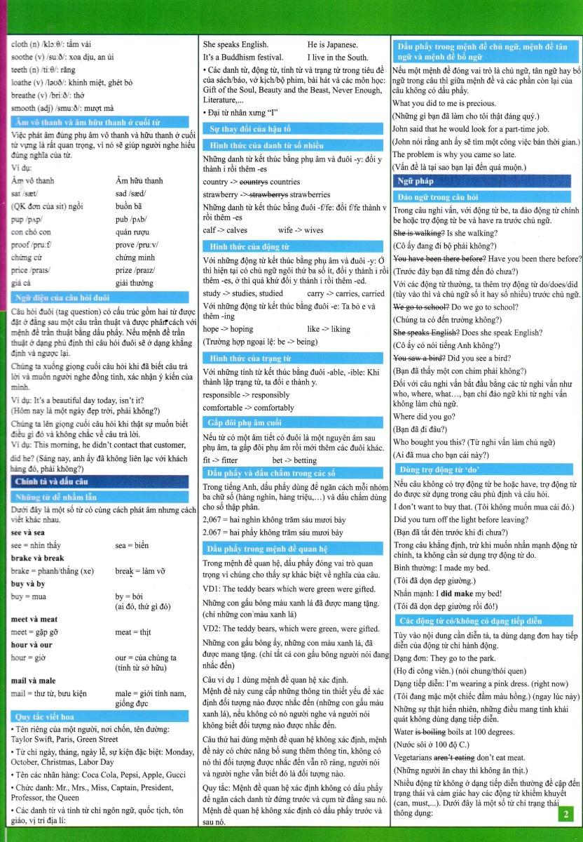 Đây là tài liệu rất thuận tiện để bạn tham khảo cũng như ôn tập kiến thức tiếng Anh khi ở nhà, ở trường hoặc khi tham gia khóa học ngoại ngữ.