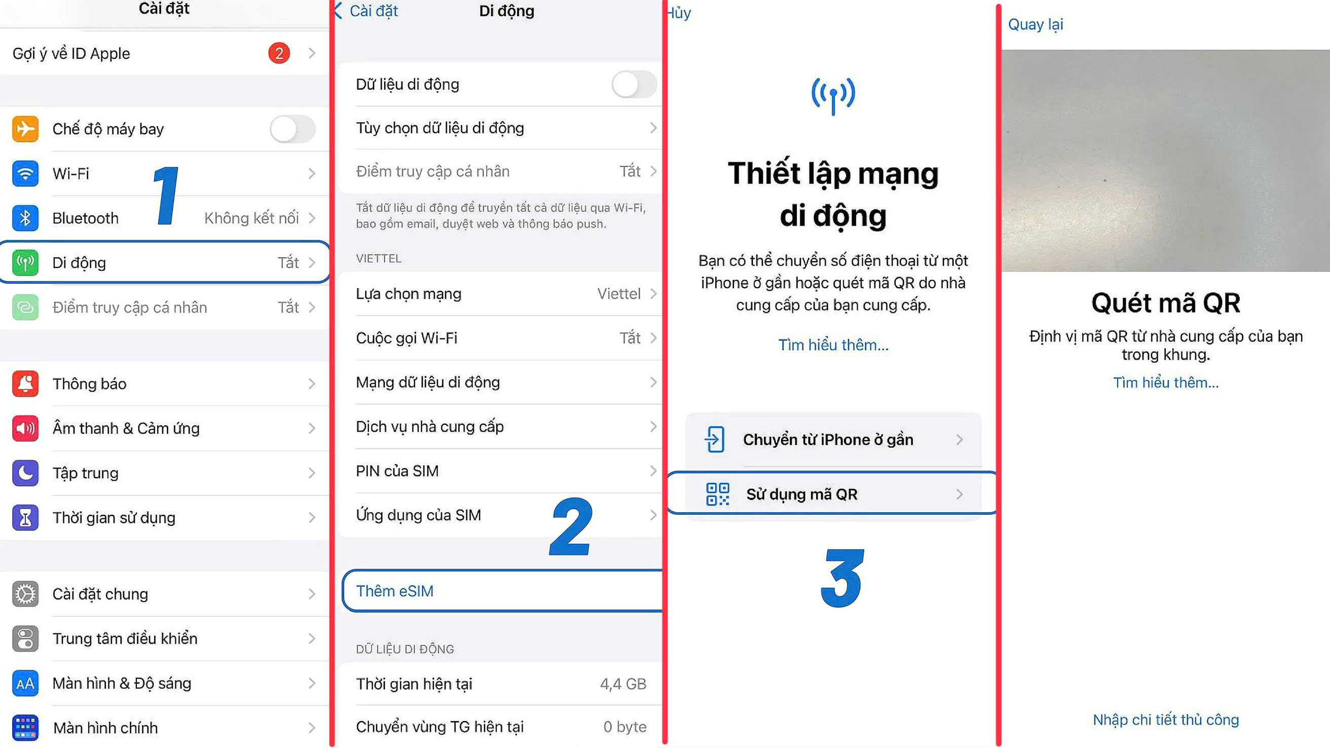 Không cần tháo SIM chính (nếu máy hỗ trợ 2 SIM: 1 eSIM + 1 vật lý).