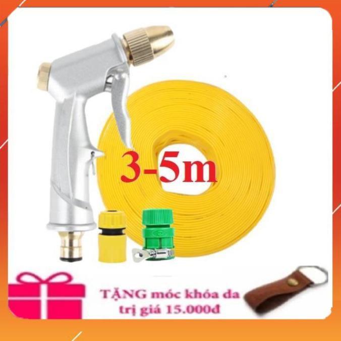 ✨Bộ dây vòi xịt nước rửa xe,tưới cây ,tăng áp 3 lần,loại 3m, 5m 206701đầu đồng,cút,nối nhựa vàng+ móc khoá
