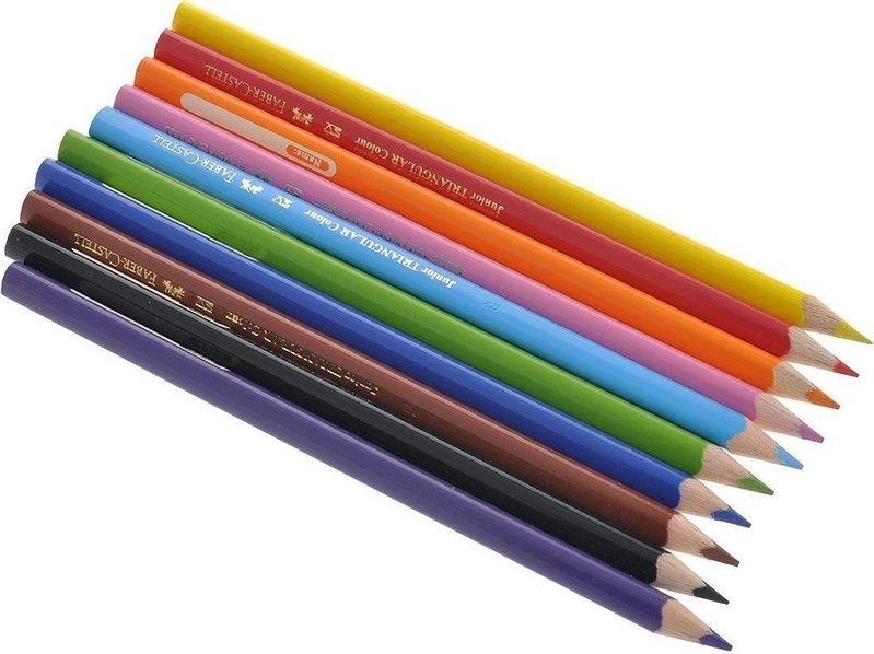 ✨Faber-Castell-11653810-Chì Màu Junior Triangular - 10 Màu Dài + Chuốt
