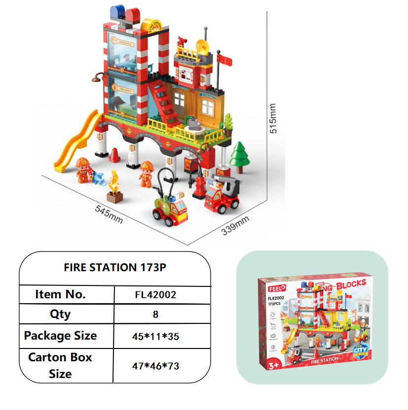 Mua tại TiktokTrạm cứu hỏa cao tầng lắp ráp – FEELO (173 PCS) – Bộ đồ chơi lắp ráp trạm cứu hỏa quy mô lớn với nhiều tầng, xe cứu hỏa, vòi nước, cầu trượt, cây xanh và nhân vật lính cứu hỏa – Gồm 173 chi tiết nhỏ, màu sắc nổi bật, dễ lắp ráp và phù hợp với bé từ 3 tuổi trở lên – Giúp bé phát triển tư duy tình huống, khả năng kể chuyện và hiểu về vai trò của lực lượng cứu hỏa trong đời sống