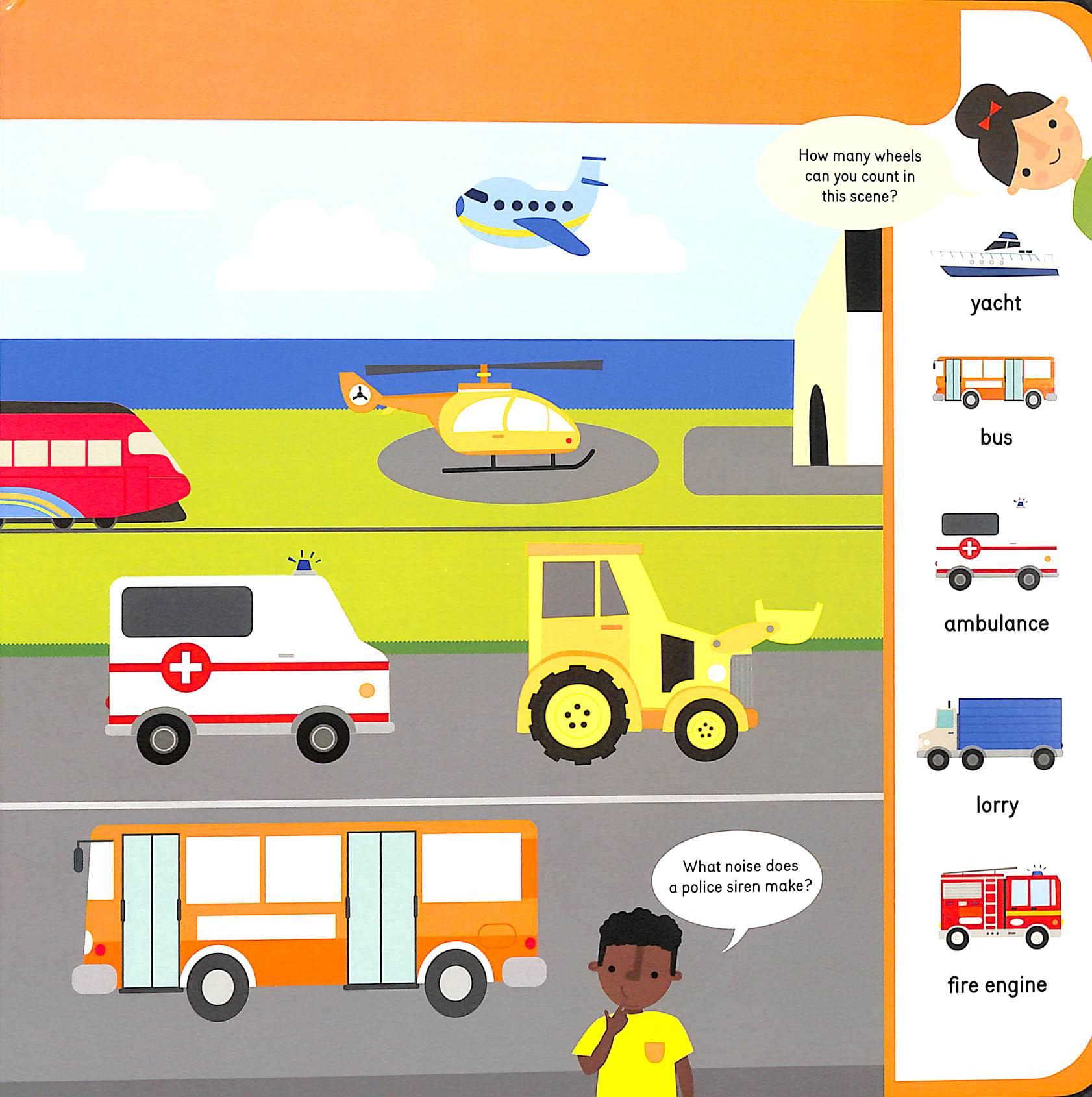 Here are over 100 familiar first words for you to learn together … in English! From zoos and farms to things that go, each illustrated scene is full of details to discuss and discover. Point at the pictures then find the English word down the side. Young characters on each page ask questions to help you practise saying English words out loud. A QR code on the back cover links to free audio of the words being read aloud by a native speaker, hosted on the publisher's website. The perfect board book as you start your journey in English.