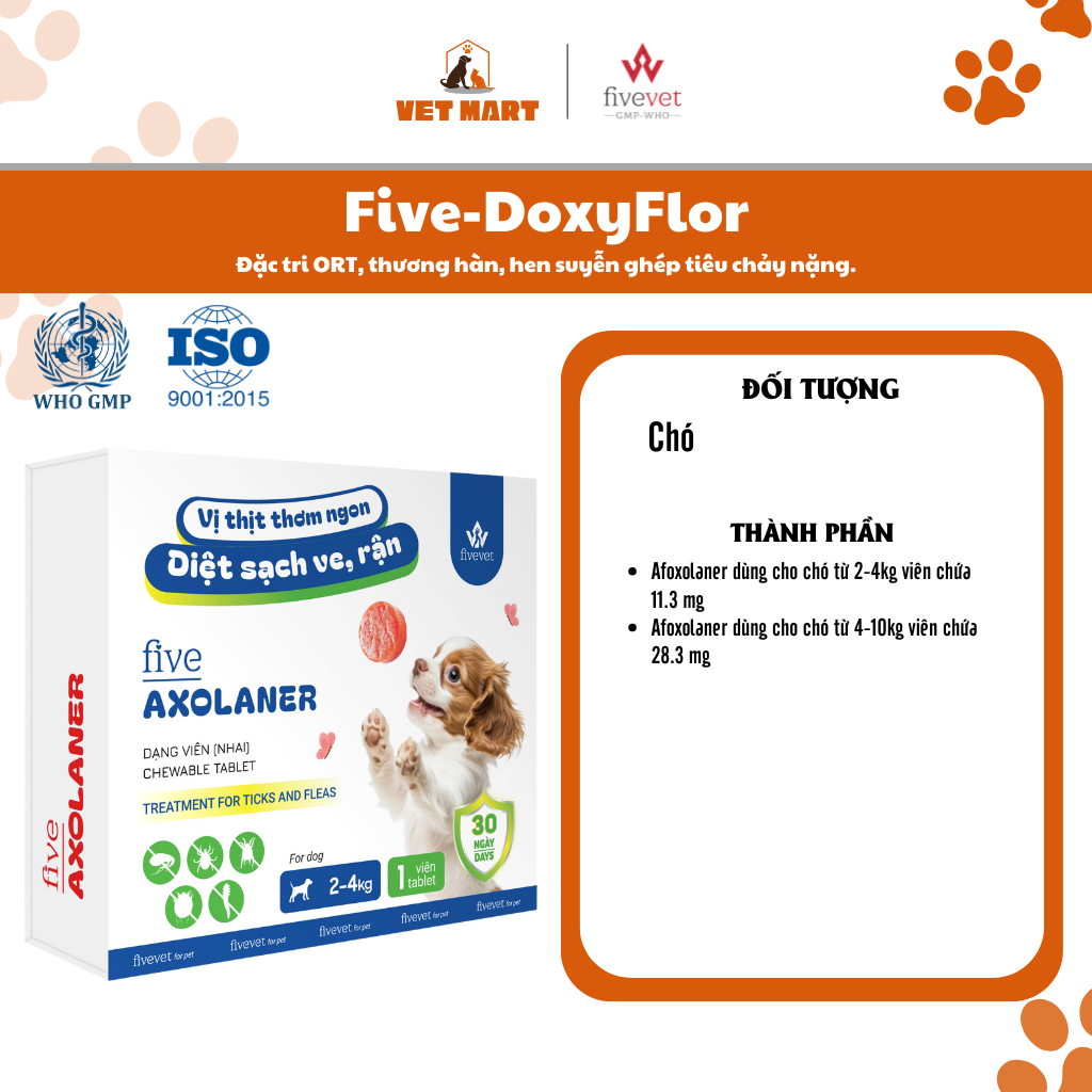 ✨Five-Axolaner Hỗ Trợ Kiểm Soát Ve Rận, Bọ Chét, Ghẻ Demodex, Sarcoptes Cho Chó Sạch Khỏe, An Toàn