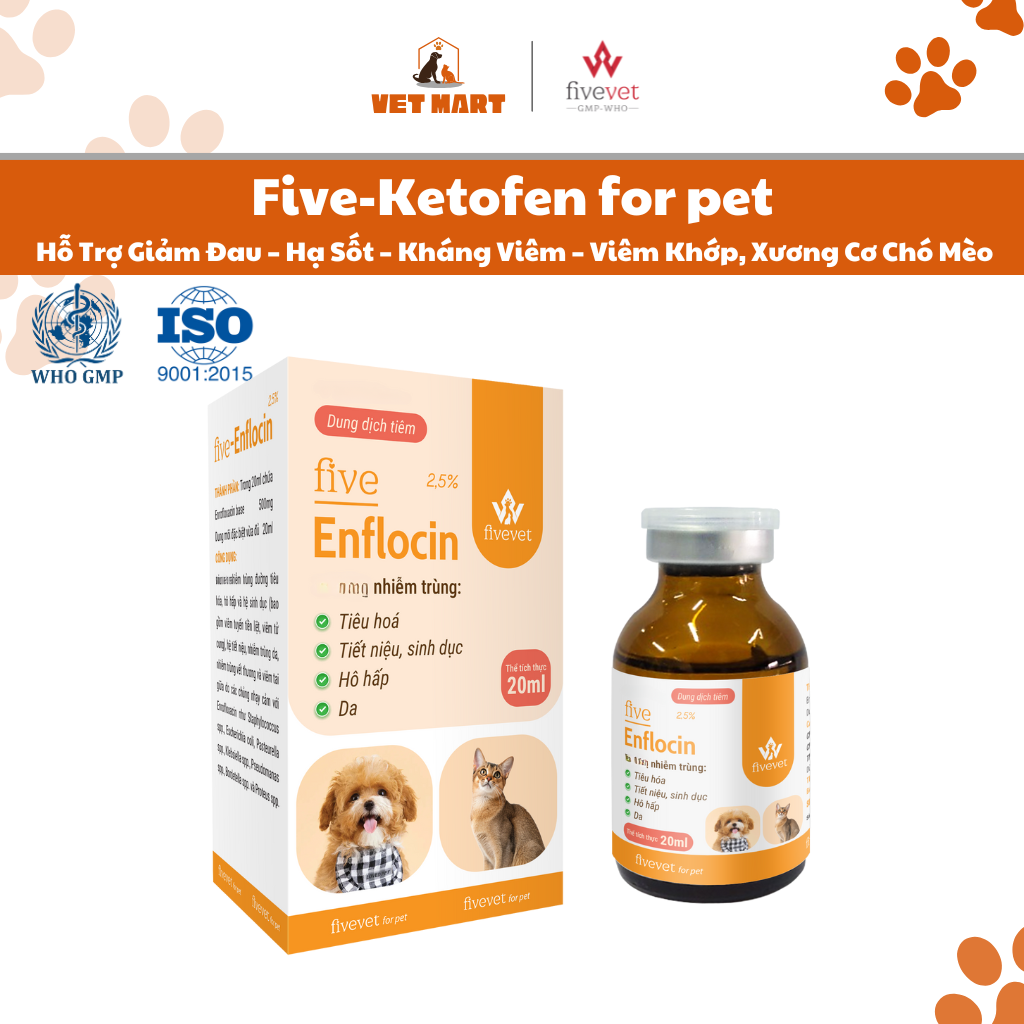 Mua tại TiktokFive-Enflocin 2.5% for Pet Hỗ Trợ Hô Hấp Tiêu Hóa Da Tiết Niệu Kháng Khuẩn Toàn Diện Cho Thú Cưng