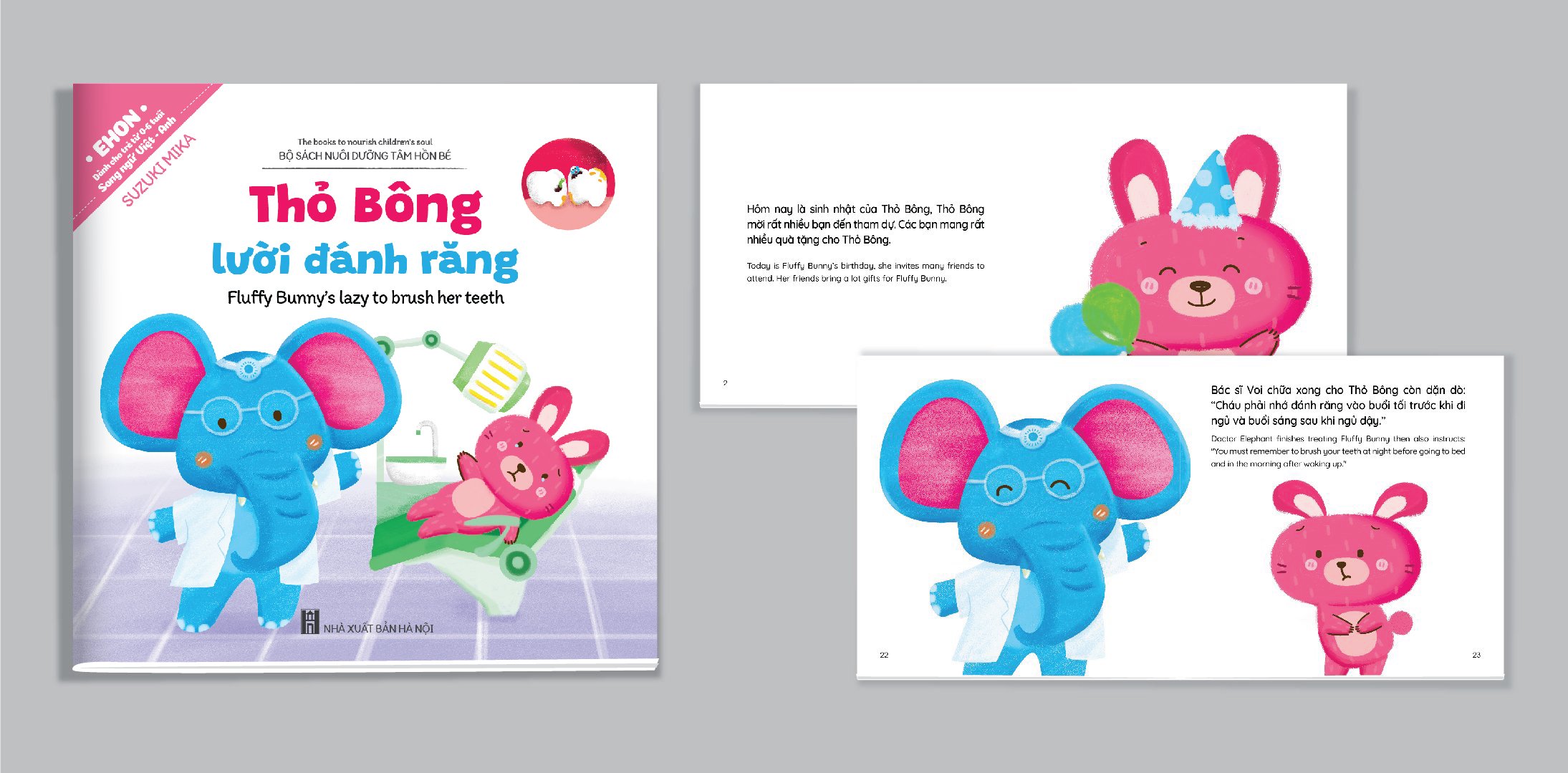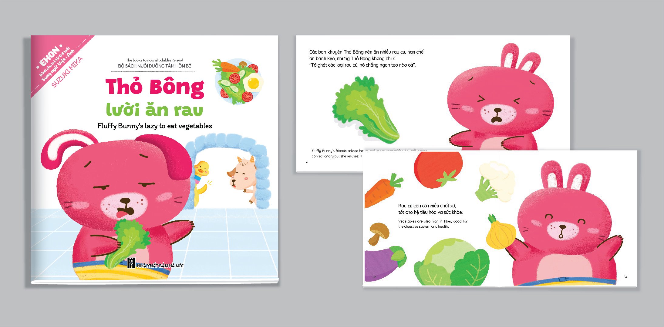 Bộ Ehon kĩ năng sống Thỏ Bông (song ngữ Việt Anh) 10 quyển (Quét mã QR file nghe) Với những câu chuyện giáo dục kĩ năng sống cho trẻ trong cuộc sống hàng ngày. Nội dung đơn giản, dễ hiểu, đồng thời ẩn chứa những bài học, lời khuyên nhủ yêu thương của bố mẹ dành cho con khi con sợ đau, lười học, lười ăn, đi ngủ muộn... Những lời động viên, khuyên bảo con một cách nhẹ nhàng để con hiểu và tự giác hơn, giúp con ngoan ngoãn, tự lập hơn trong cuộc sống. Trọn bộ gồm 10 quyển: