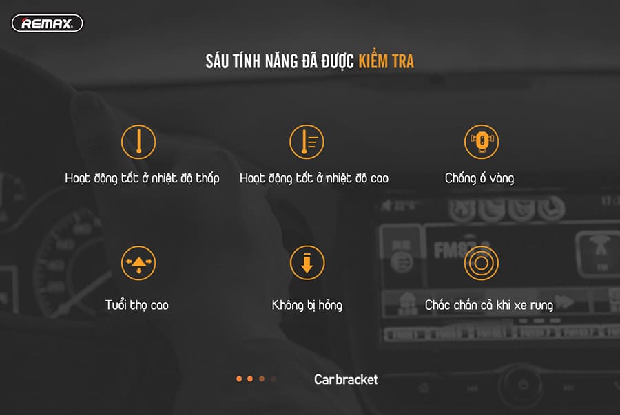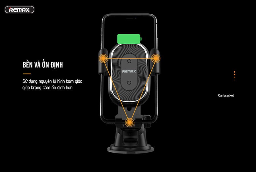 Bạn đang tìm kiếm một chiếc giá đỡ điện thoại kiêm sạc không dây để sử dụng trên ô tô thì không thể bỏ qua RM-C37 của Remax. Thiết kế nhỏ gọn – thông minh RM-C37 của Remax sở hữu thiết kế nhỏ gọn chỉ 105x96x160mm với trọng lượng chỉ 190g rất nhỏ gọn, phù hợp với nhiều không gian xe. Phần giá đỡ của RM-C37 linh hoạt, có khả năng kéo mở tương thích với điện thoại màn hình từ 5inch – 6,5inch. Chân đế được thiết kế hình tròn thông minh với keo dính chắc chắn cho phép bạn dễ dàng cố định RM-C37 tại nhiều vị trí khác nhau trên xe. Dễ dàng điều chỉnh góc độ Phần trục đỡ được thiết kế chắc chắn cho khả năng cố định vô cùng tốt. Đặc biệt giá đỡ thiết kế dạng trục xoay linh hoạt, dễ dàng điều chỉnh mọi góc độ khi sử dụng vô cùng tiện lợi. Tích hợp sạc không dây tiện lợi Giá đỡ điện thoại RM-C37 được tích hợp tính năng sạc không dây tương thích với hầu hết các thiết bị có hỗ trợ sạc không dây. Đặc biệt với thiết bị này bạn sẽ không cần phải tháo ốp trong quá trình sử dụng, vô cùng tiện lợi. Bên cạnh đó đi kèm với RM-C37 còn có bộ sạc có dây dành cho những thiết bị không hỗ trợ tính năng sạc không dây rất tiện lợi. Chất liệu cao cấp Toàn bộ giá đỡ RM-C37 được làm từ nhựa ABS + Nhôm cao cấp cho độ bền cao. Cấu trúc sản phẩm chắc chắn cho khả năng cố định tốt, đảm bảo điện thoại không bị rơi rớt ngay cả khi xe chạy trên những địa hình không được bằng phẳng