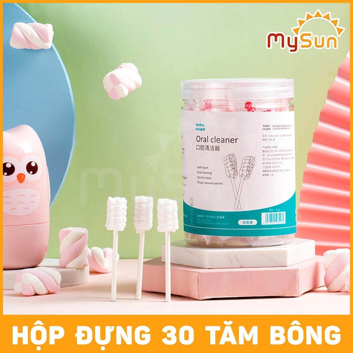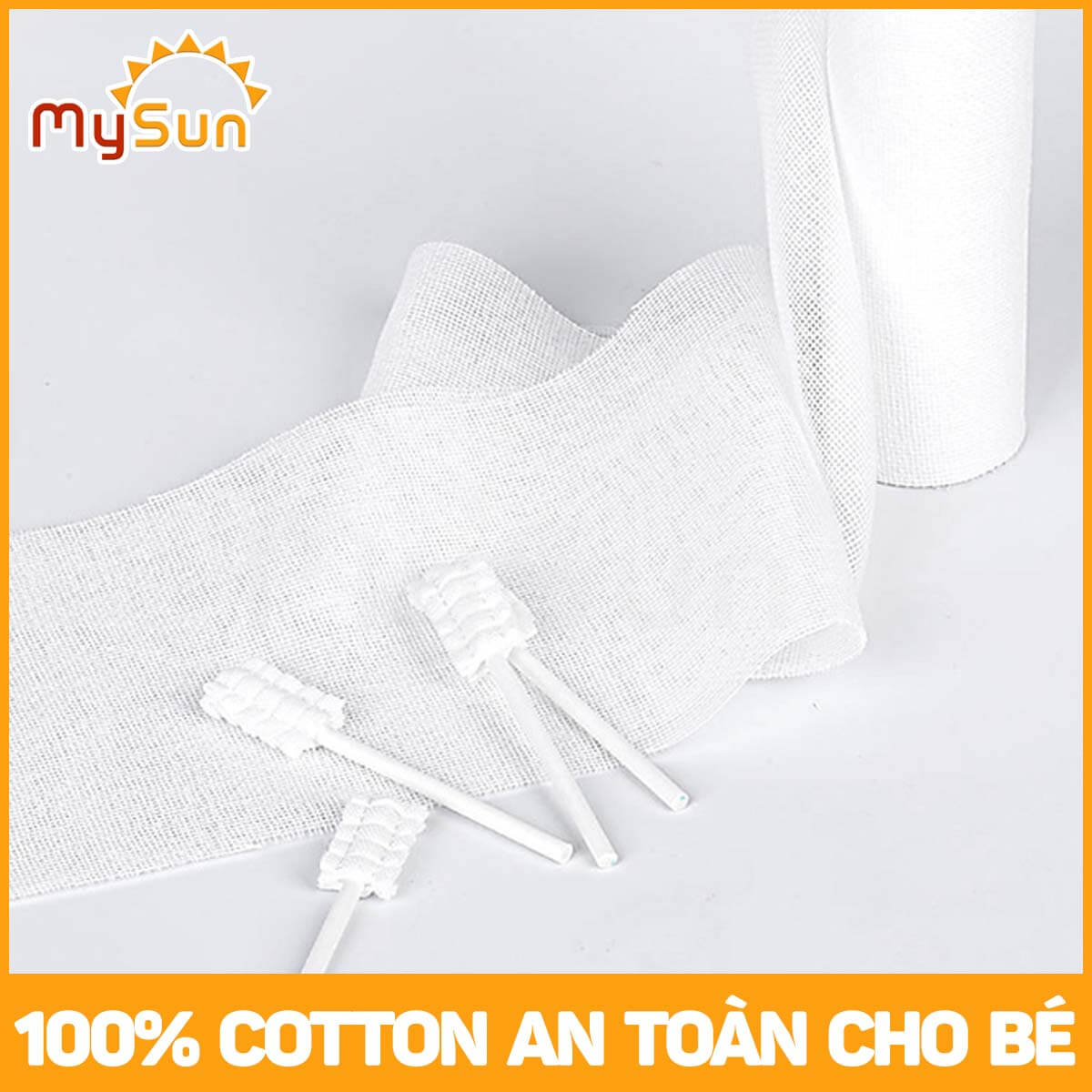 Gạc Rơ/ Tưa Lưỡi Cho Bé MySun 30 Que, Dệt Sợi Cotton 100% Giới thiệu Trong giai đoạn tháng sơ sinh, em bé cần được vệ sinh miệng lưỡi thường xuyên. Việc vệ rơ lưỡi