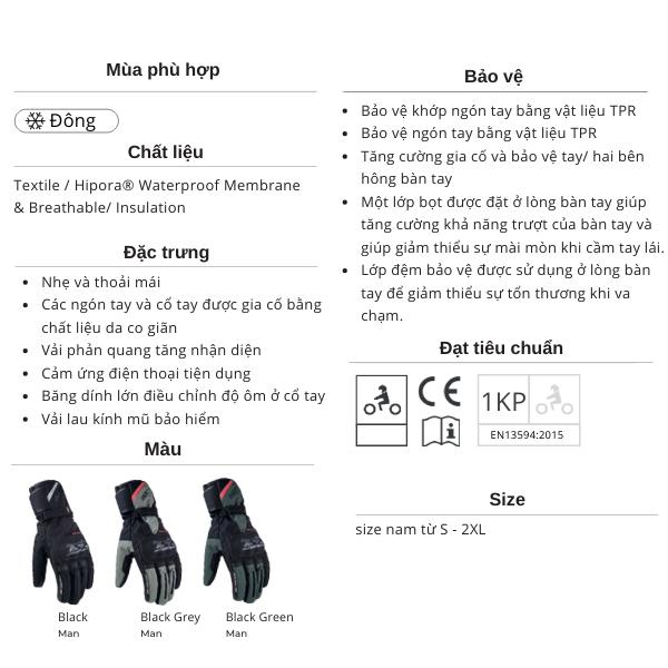 Găng tay LS2 Snow Man đạt tiêu chuẩn châu Âu EN 13594: 2015.