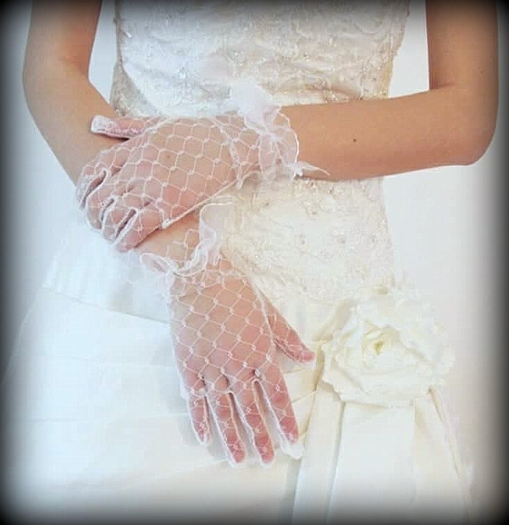 Mua tại TiktokGăng tay Cô dâu và Dạ hội MS: 37513 Chất liệu: ren mắt cáo, cổ găng đính ruy băng Màu sắc: trắng kem