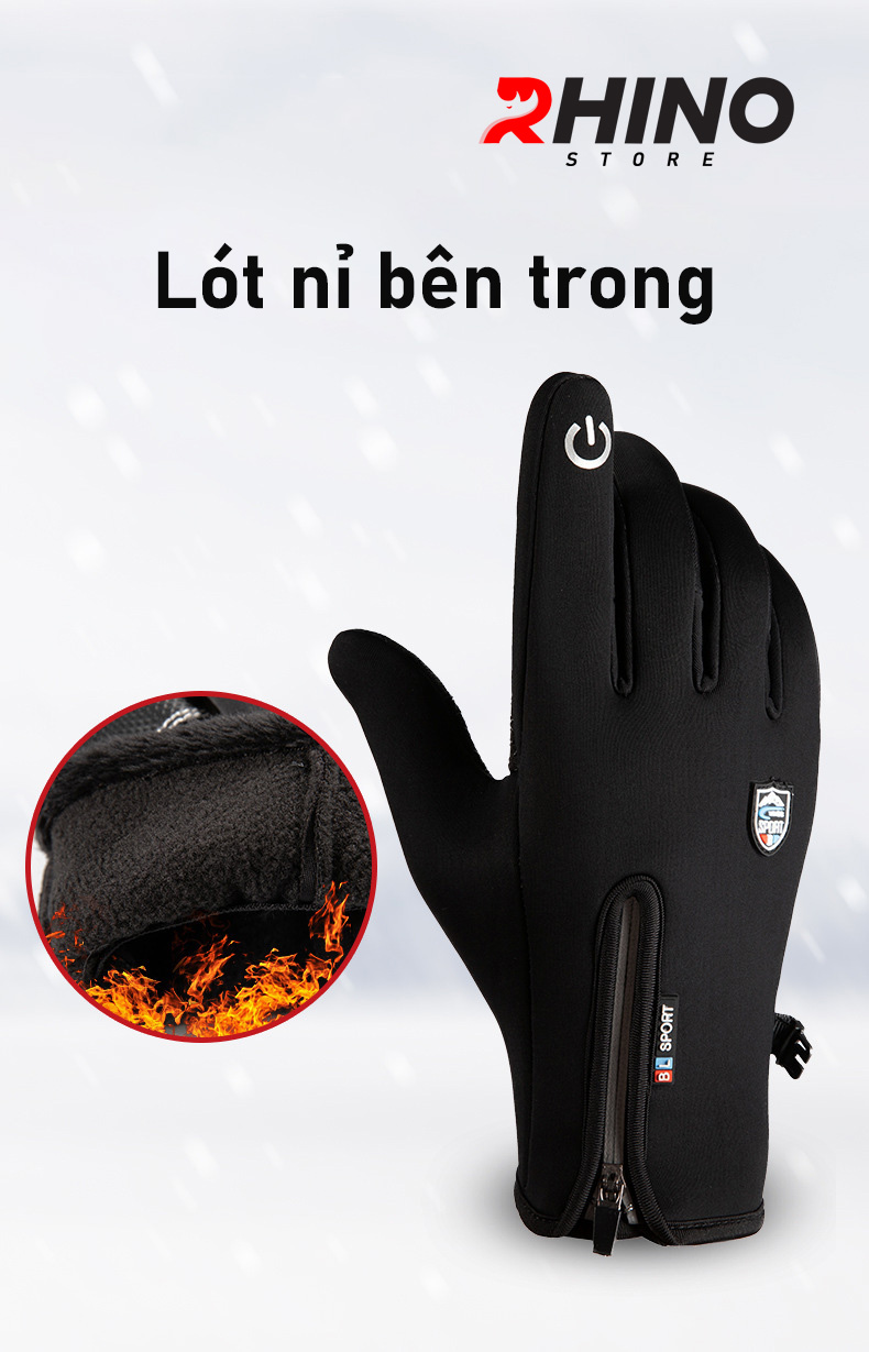 Mua tại TiktokGăng tay giữ ấm mùa đông Rhino G901 B Bao tay chống trượt đi xe máy, xe đạp lót nỉ cho nam nữ, bảo hộ đi phượt