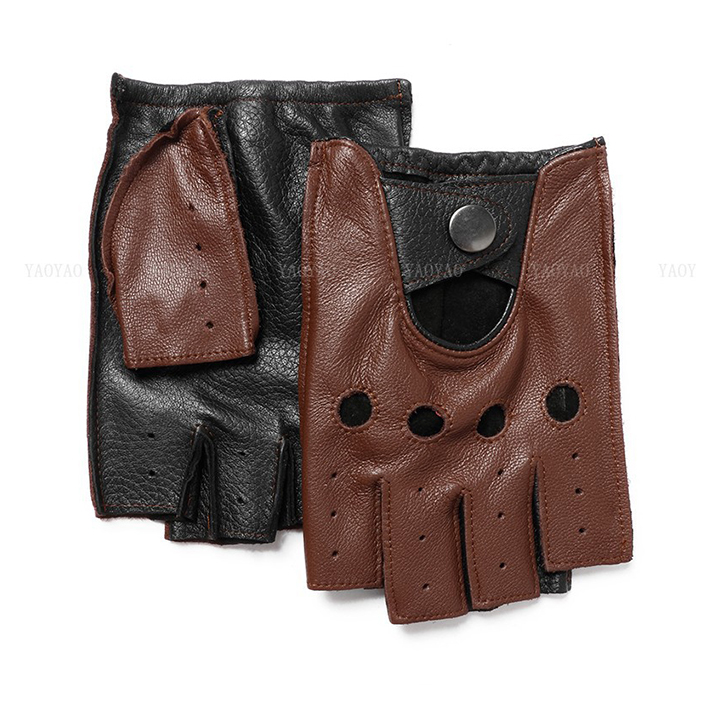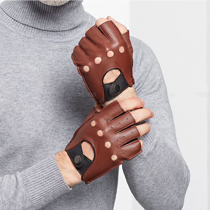 Găng tay hở ngón nam BHY8853 Bao da lái xe da cừu nguyên miếng