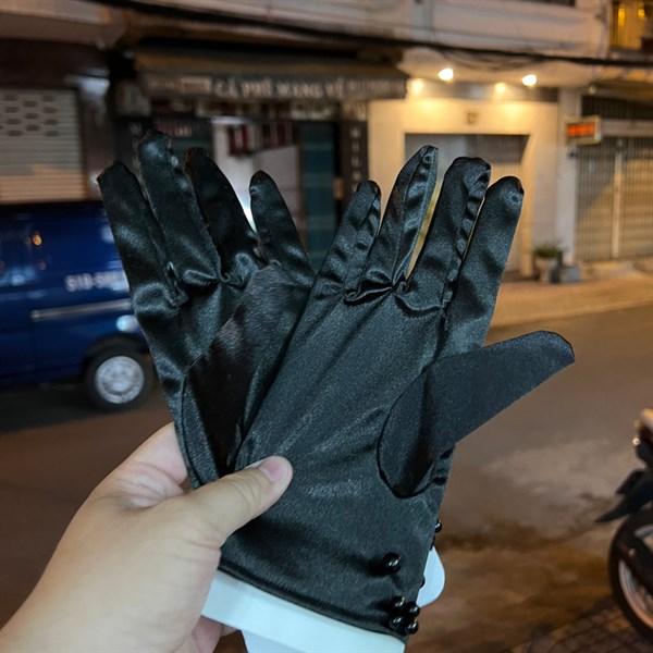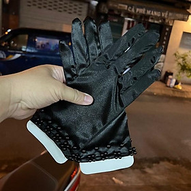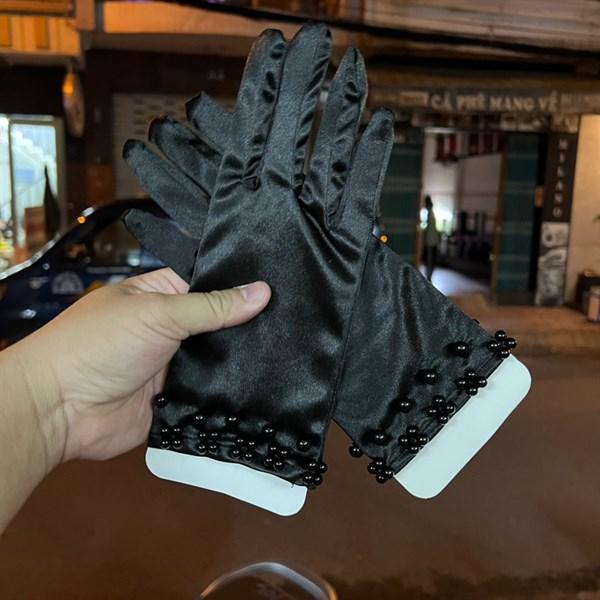 ✨Găng tay nữ đen ngắn phi bóng đính hạt trai đen Giangpkc