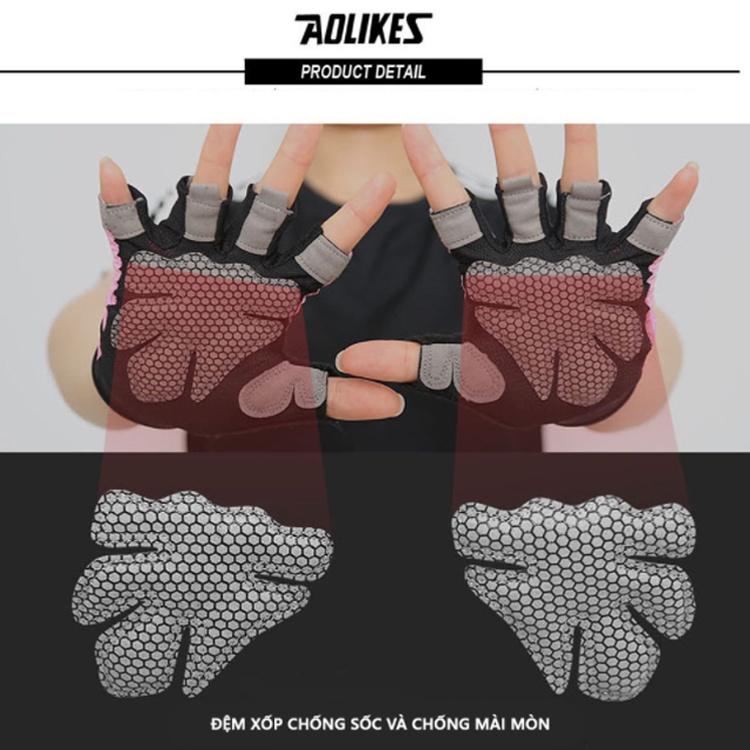 Găng tay xỏ ngón nửa bàn Aolikes 111 - Găng tay nửa bàn AL111 tập gym, tập tạ mang lại cho bạn cảm giác khá êm, chống chai tay và thấm mồ hôi tốt, găng