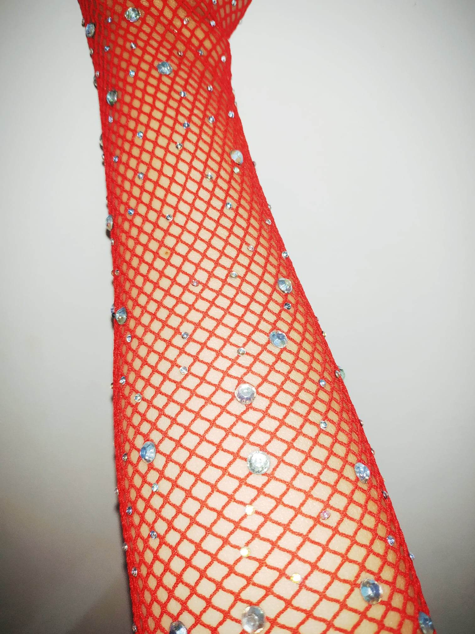 Hoạ tiết: lưới mắt cá, đính hạt đá nhân tạo lấp lánh 7 màu.
